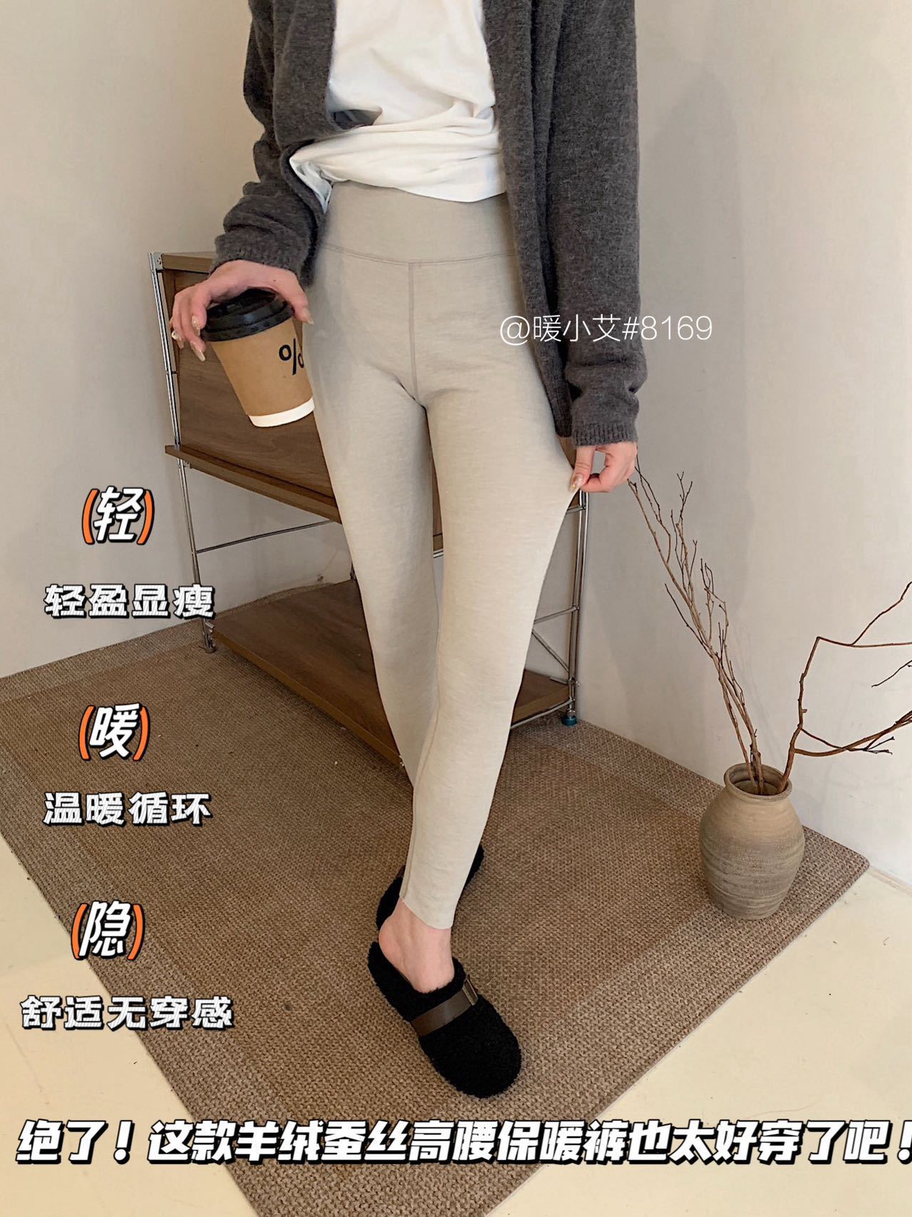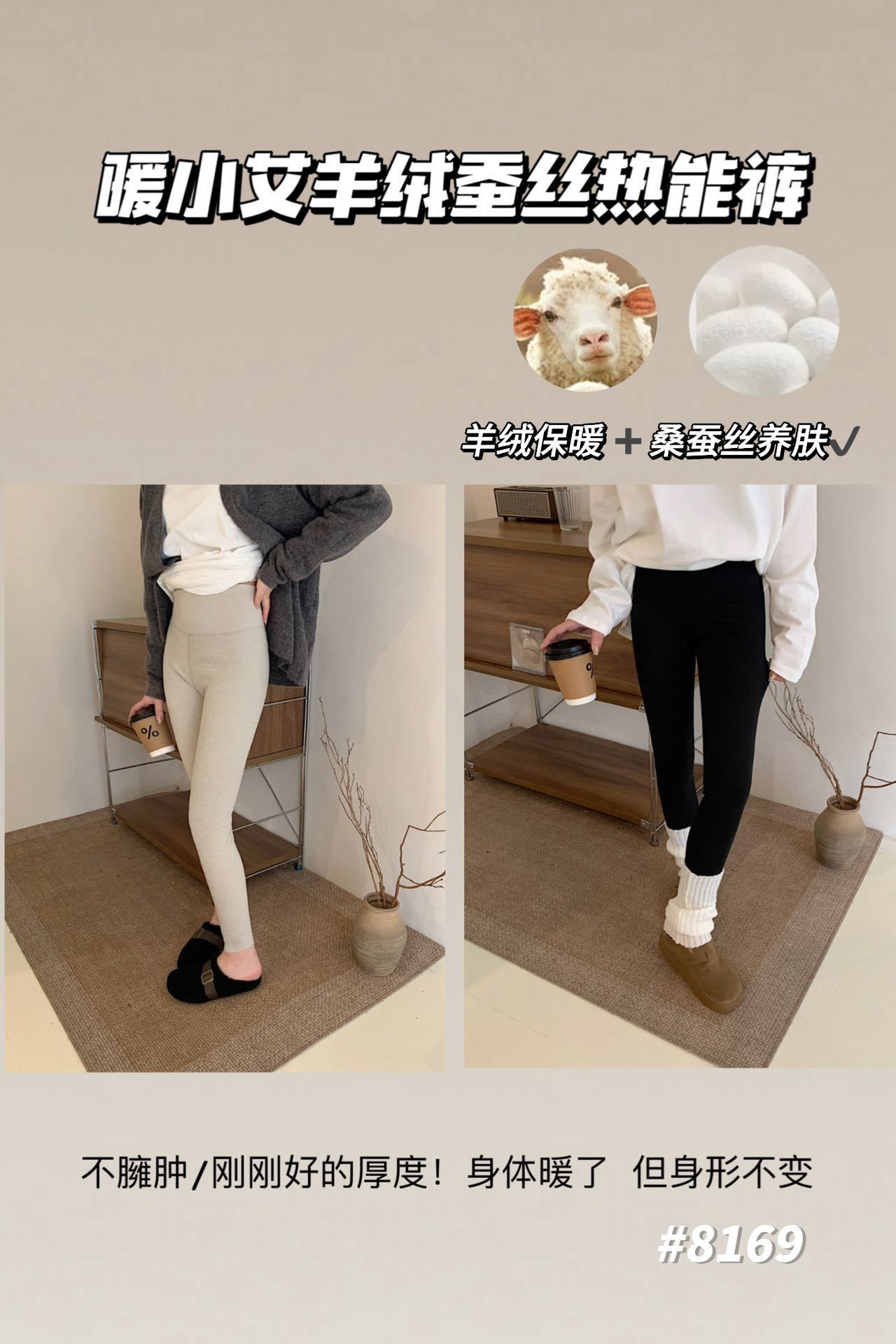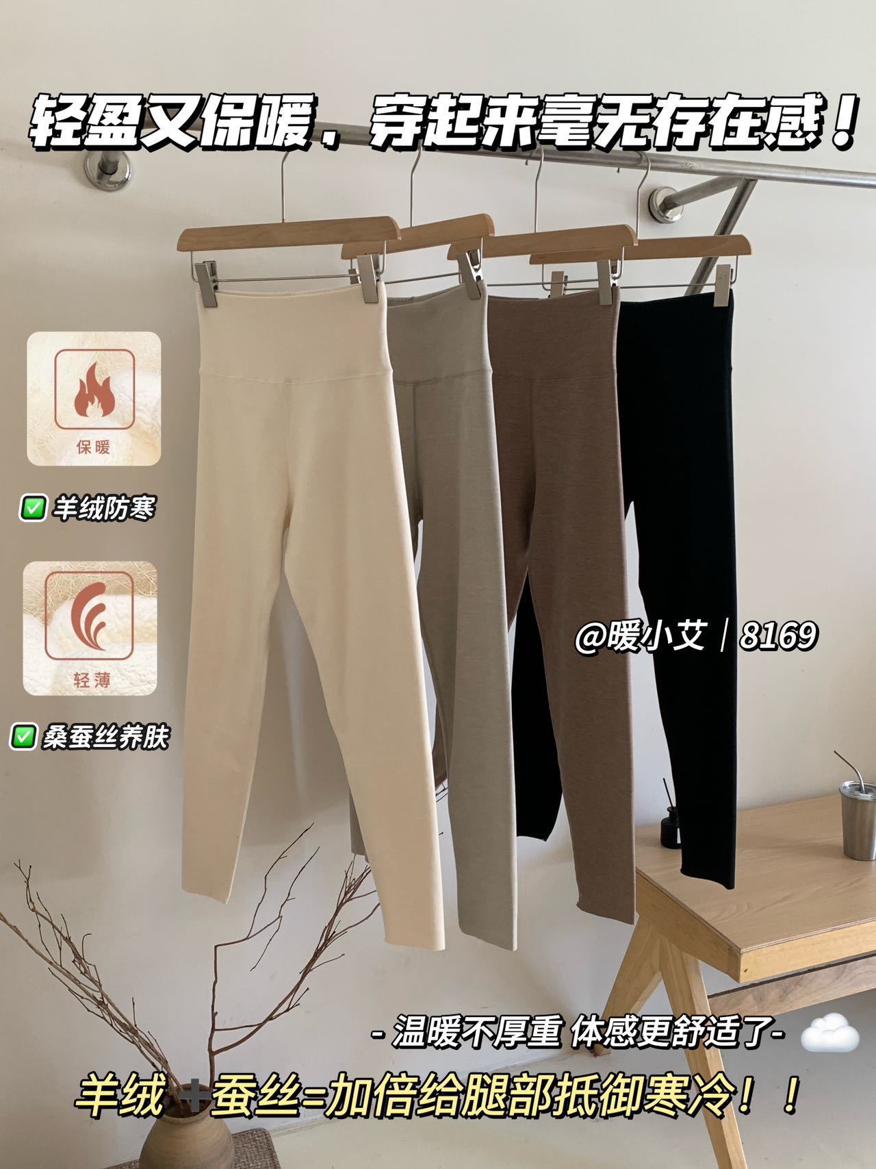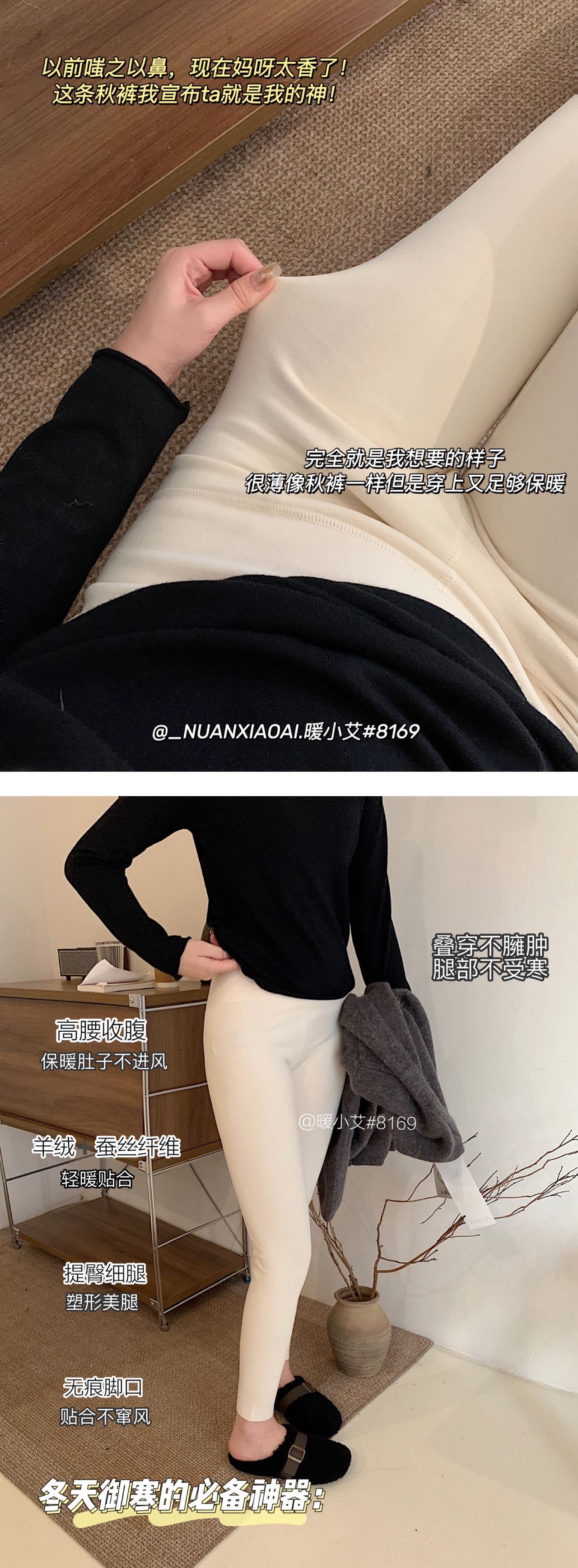 暖小艾8169羊绒蚕丝热能裤秋冬加绒加厚发热保暖秋裤女高腰打底裤