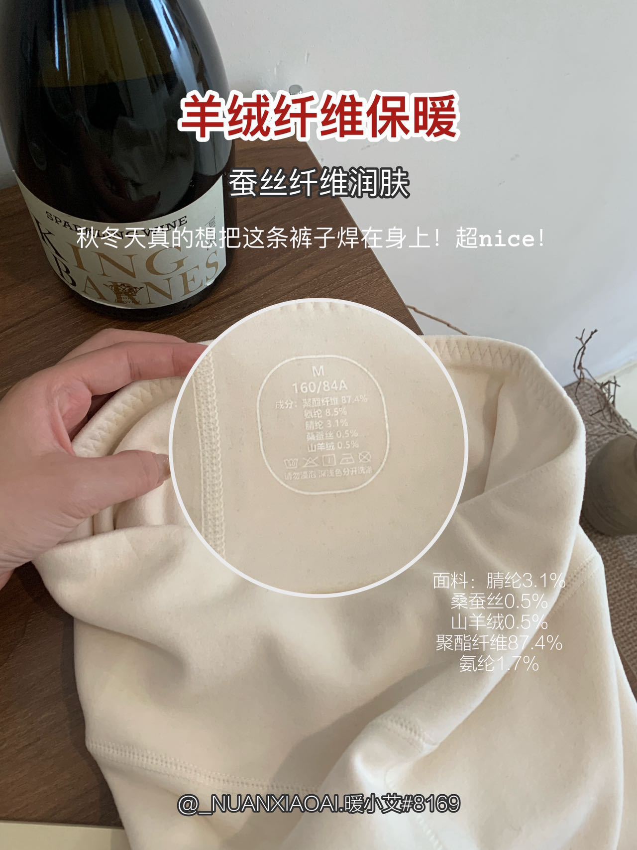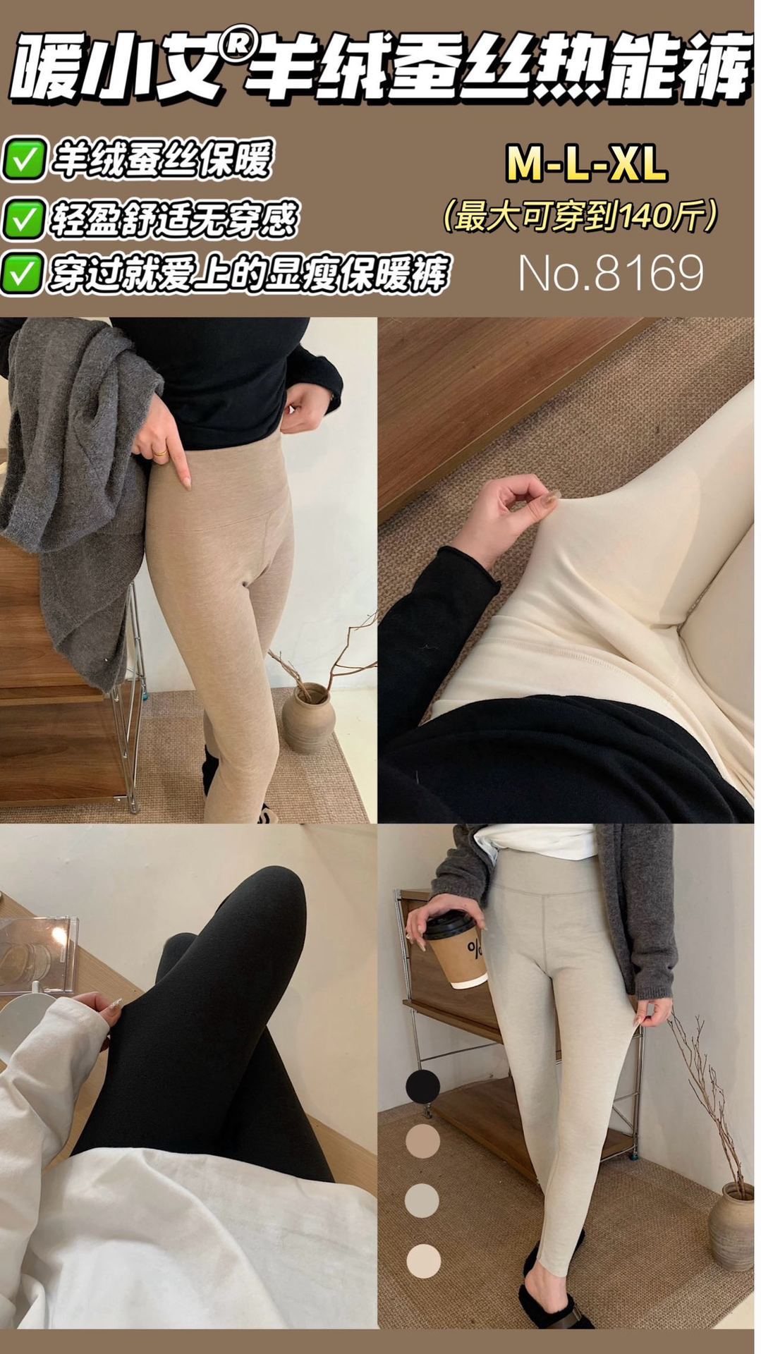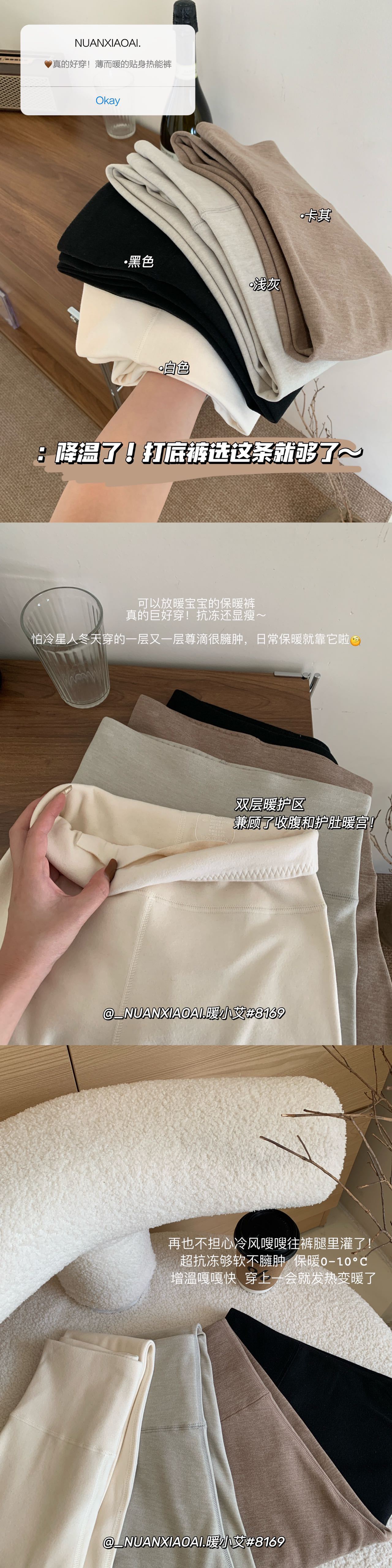 暖小艾8169羊绒蚕丝热能裤秋冬加绒加厚发热保暖秋裤女高腰打底裤