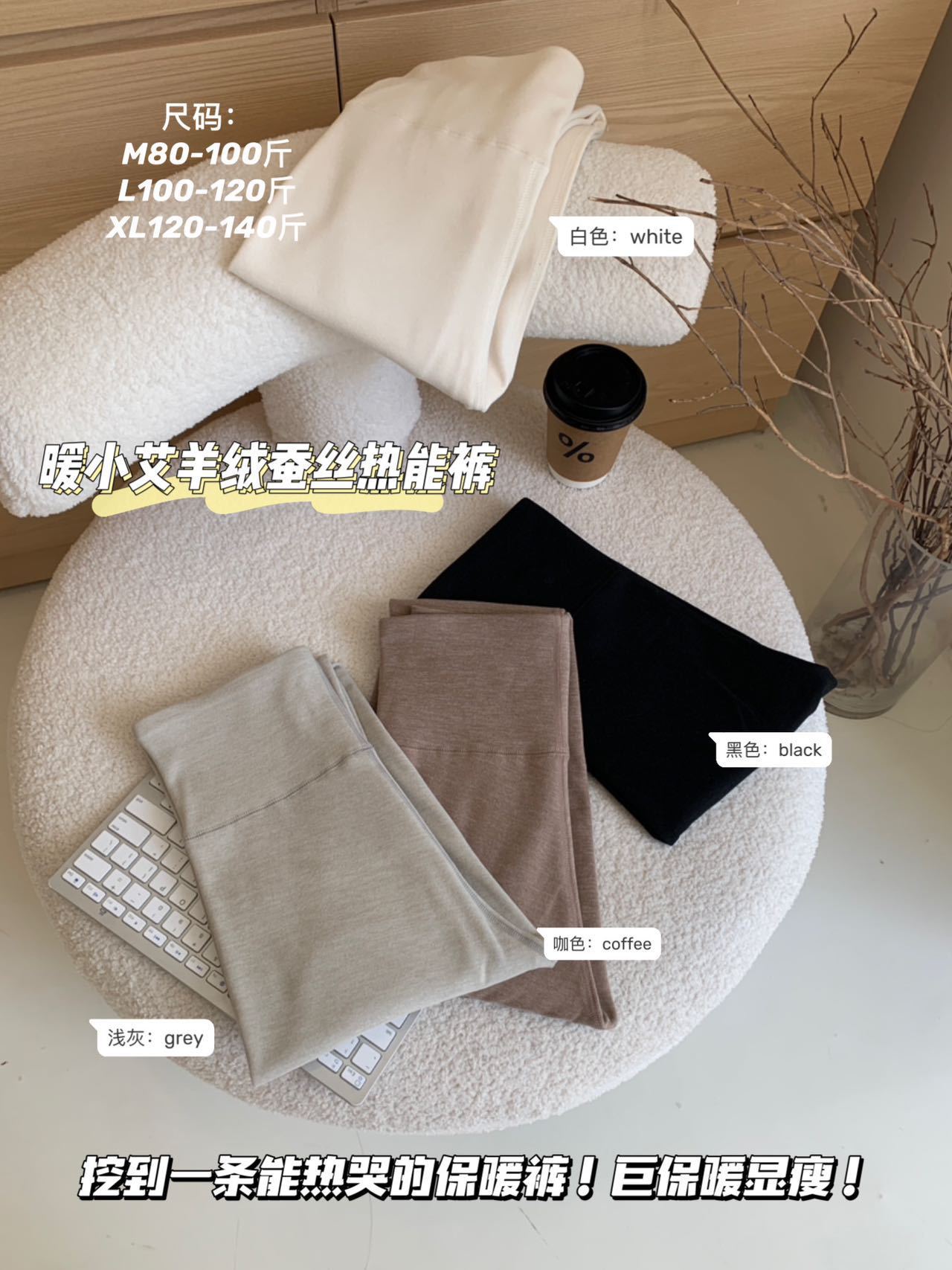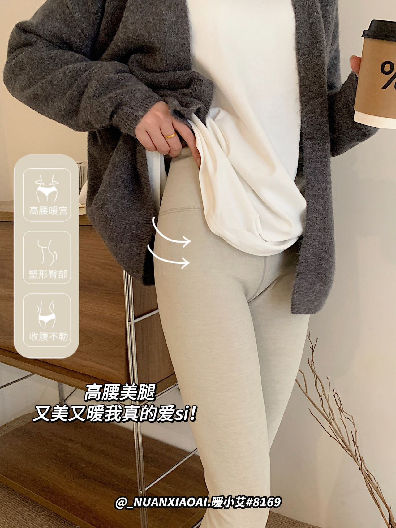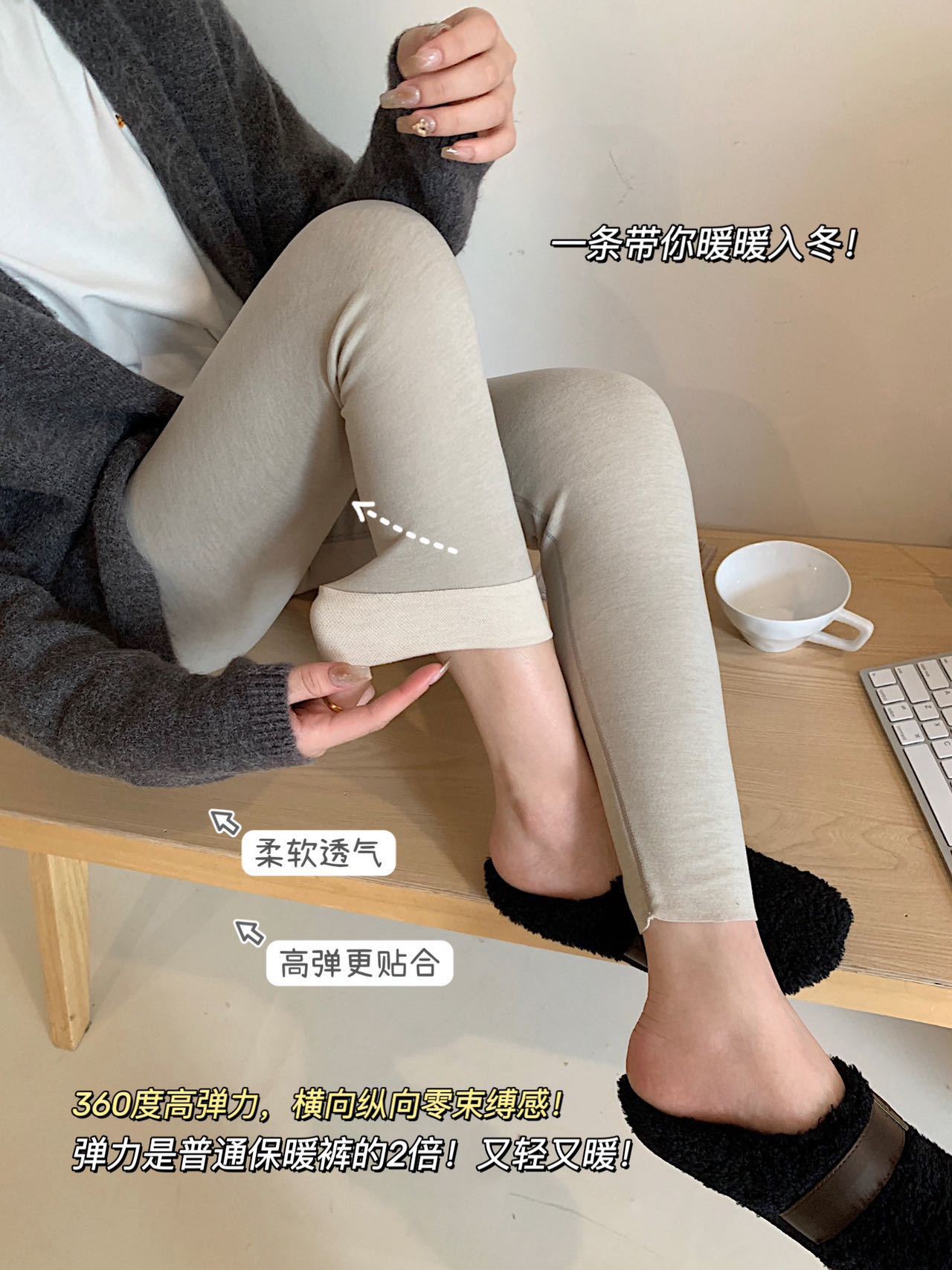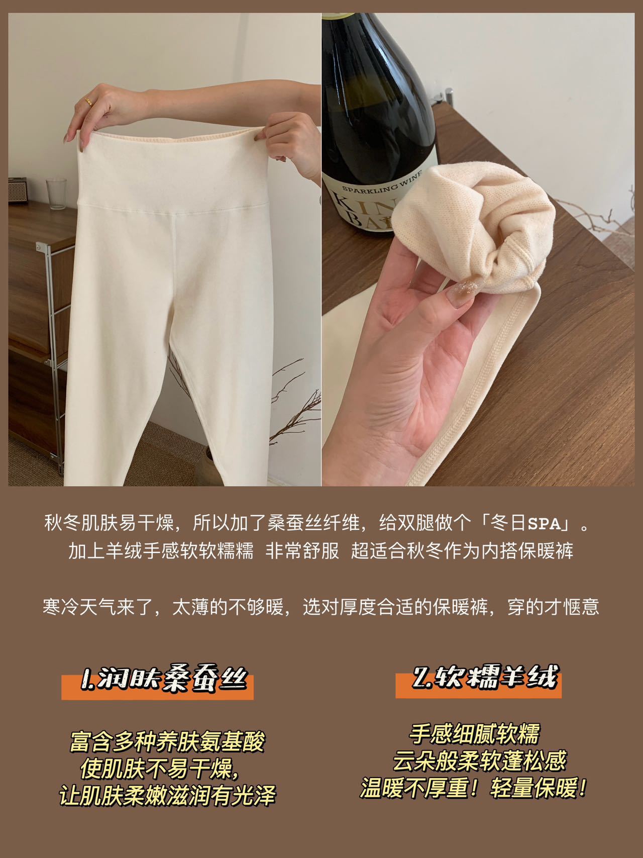 暖小艾8169羊绒蚕丝热能裤秋冬加绒加厚发热保暖秋裤女高腰打底裤