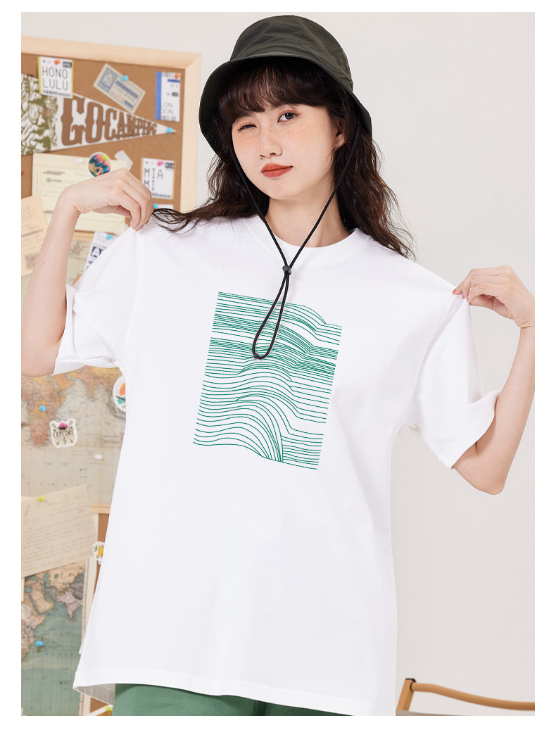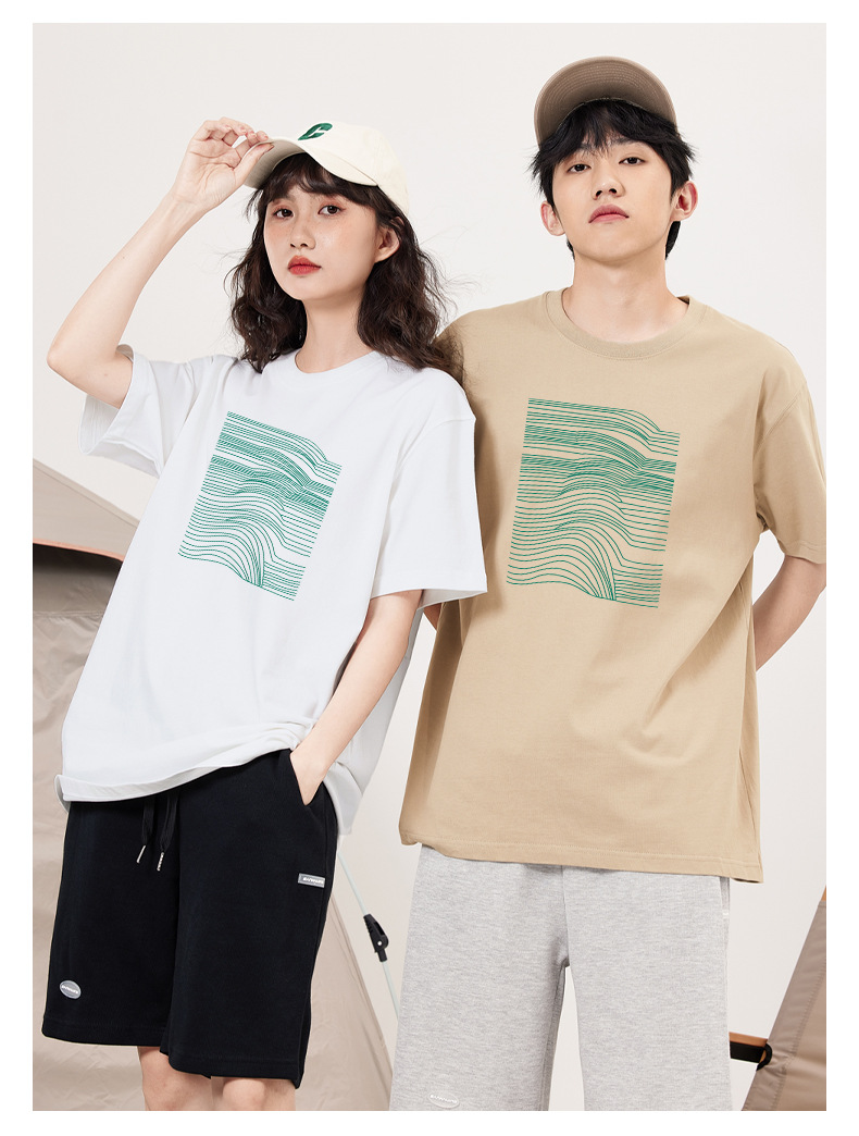 「16色可选!男女同款」简约线条设计感短袖t恤女夏季休闲情侣衫纯棉宽松半袖上衣潮