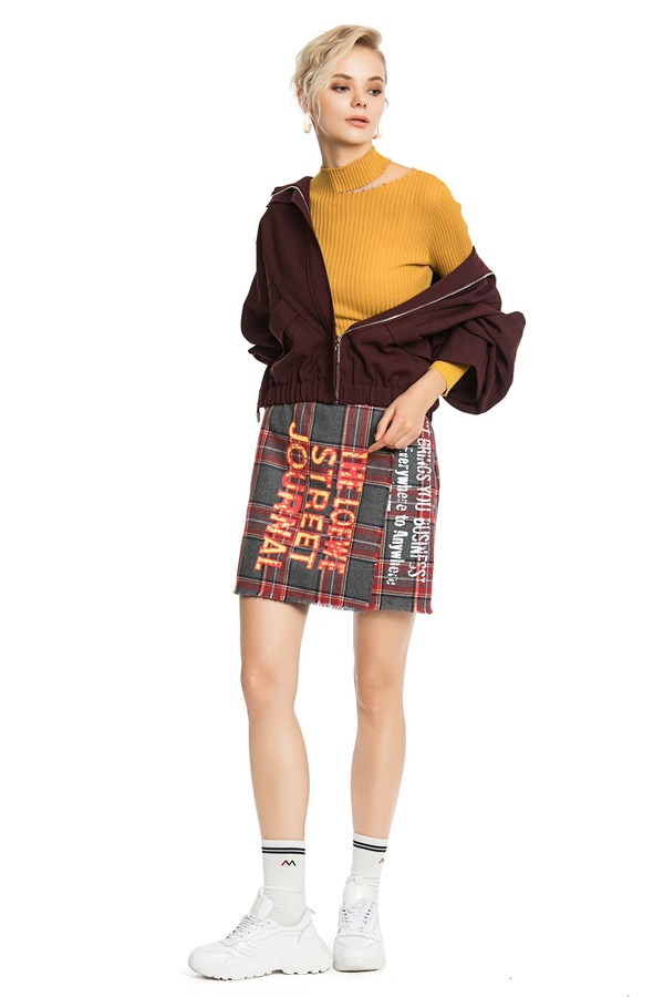 URBAN REVIVO 格纹系带连帽衬衫裙 4200