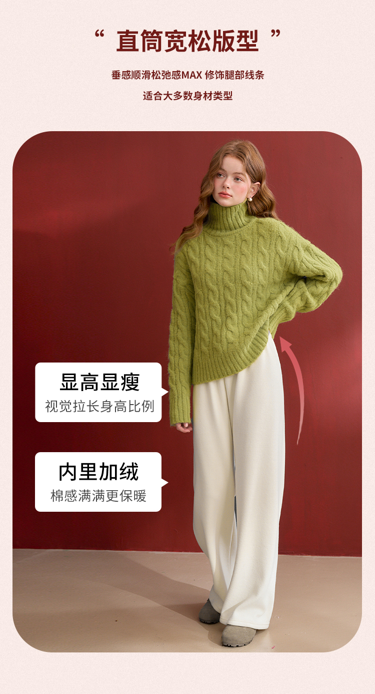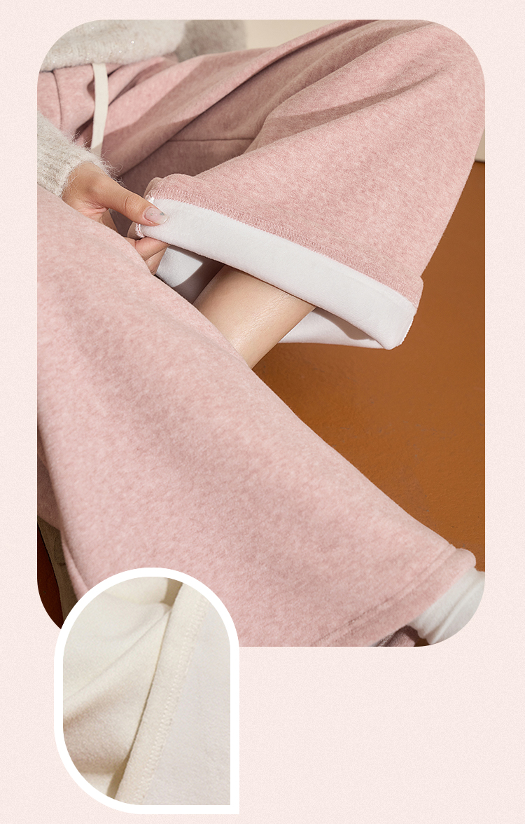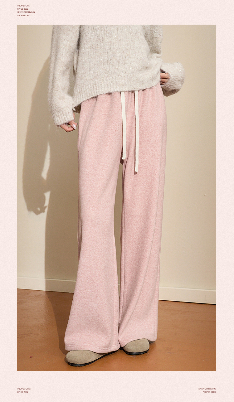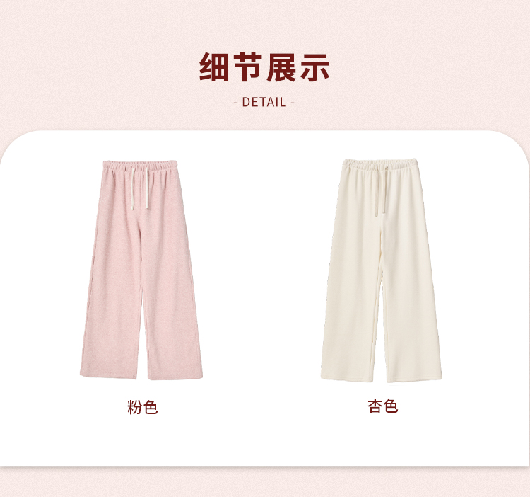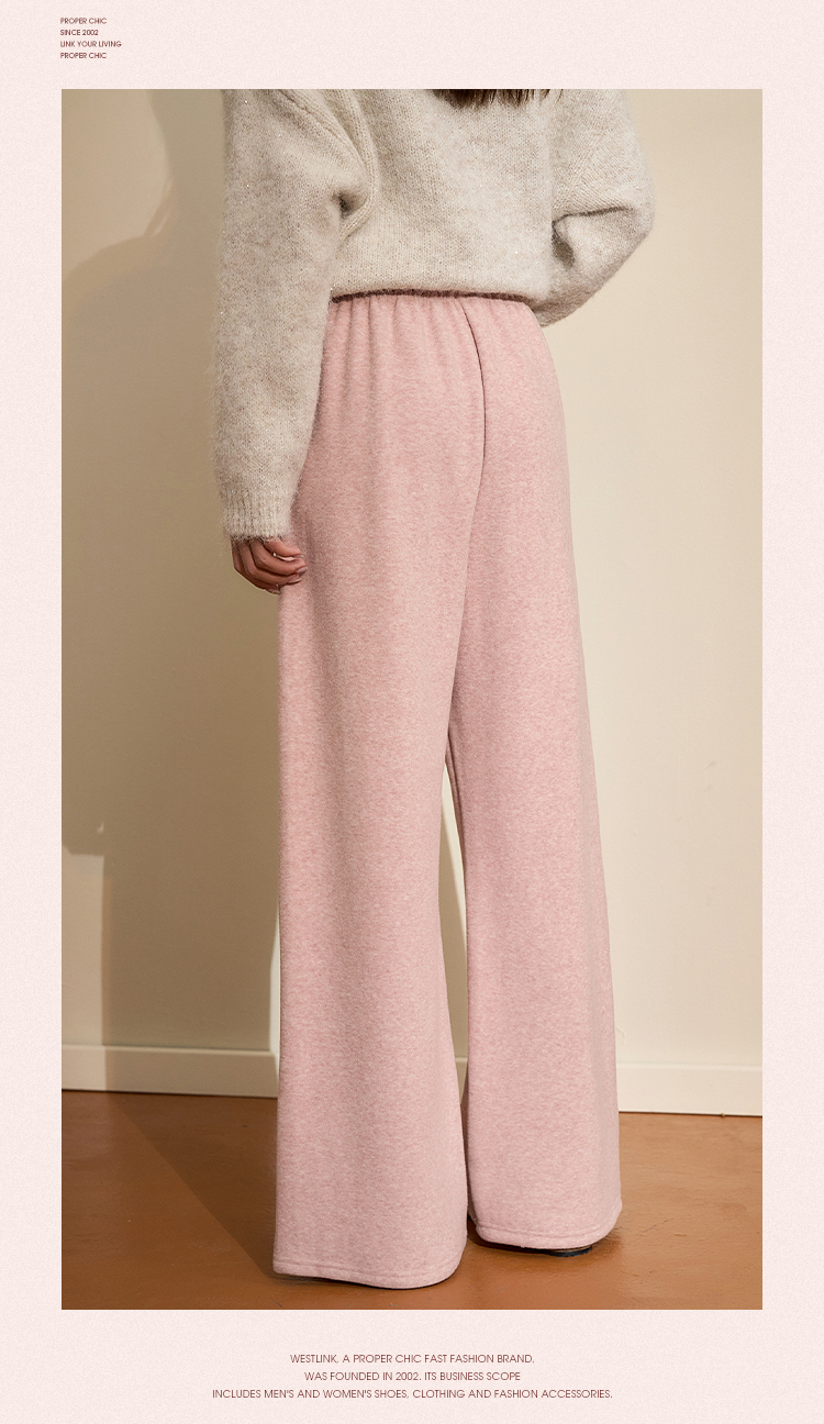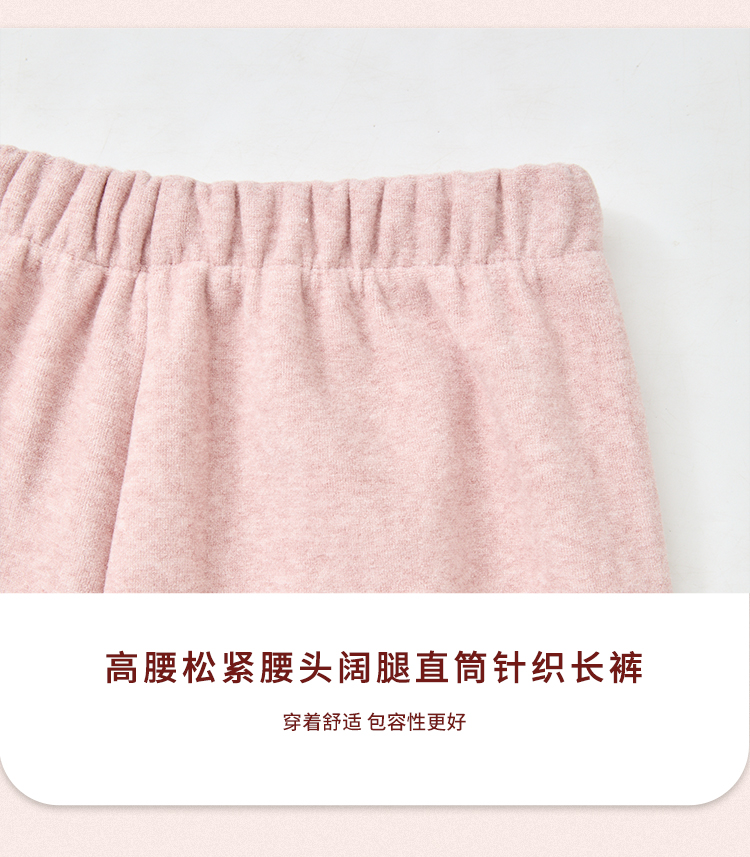 西遇粉色加绒加厚阔腿裤女新款休闲宽松小个子直筒卫裤D0044109