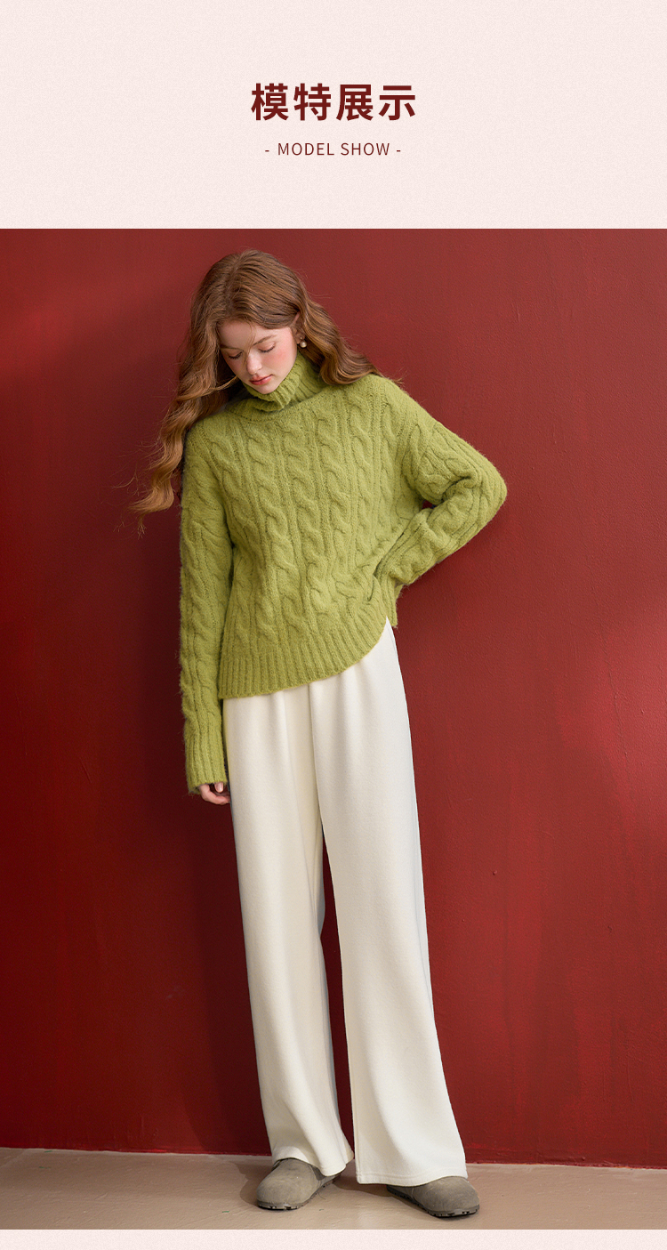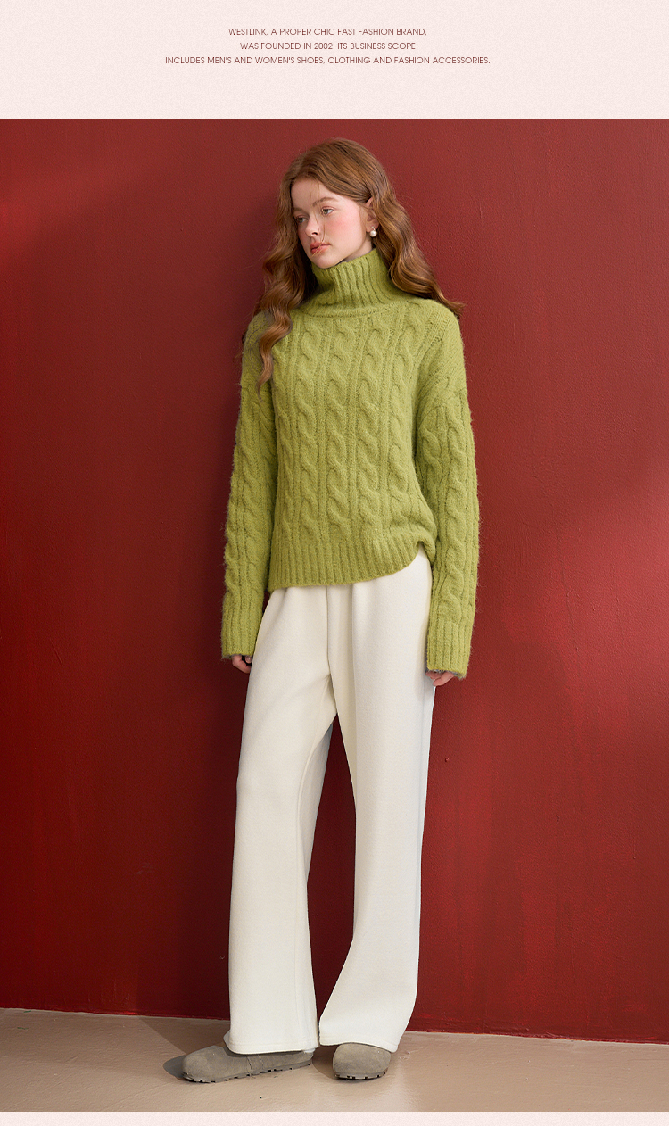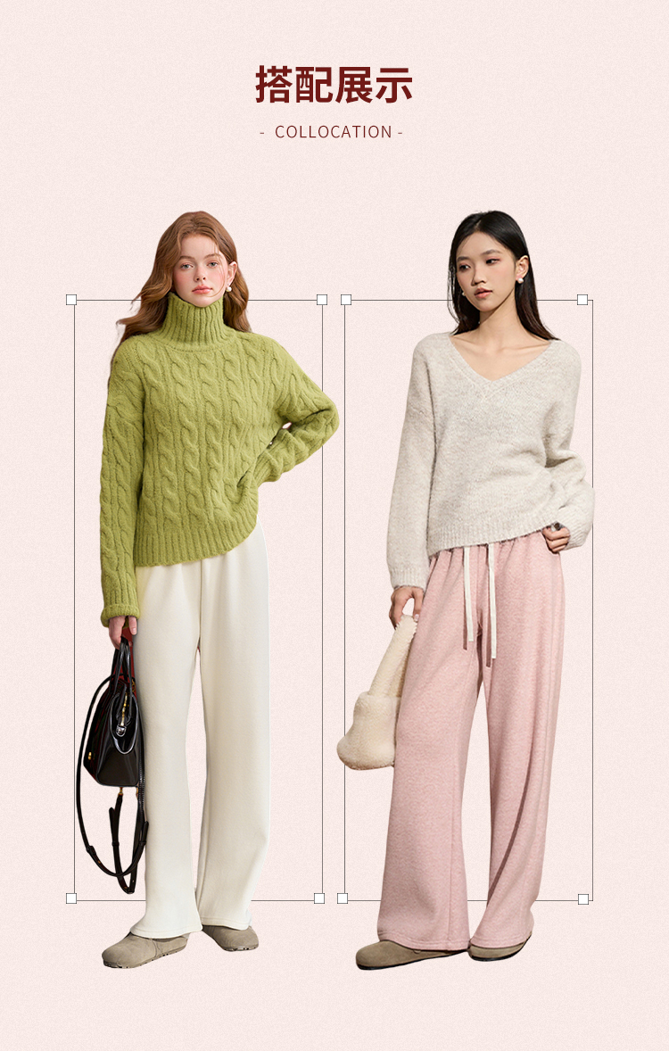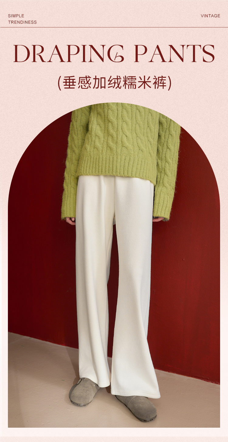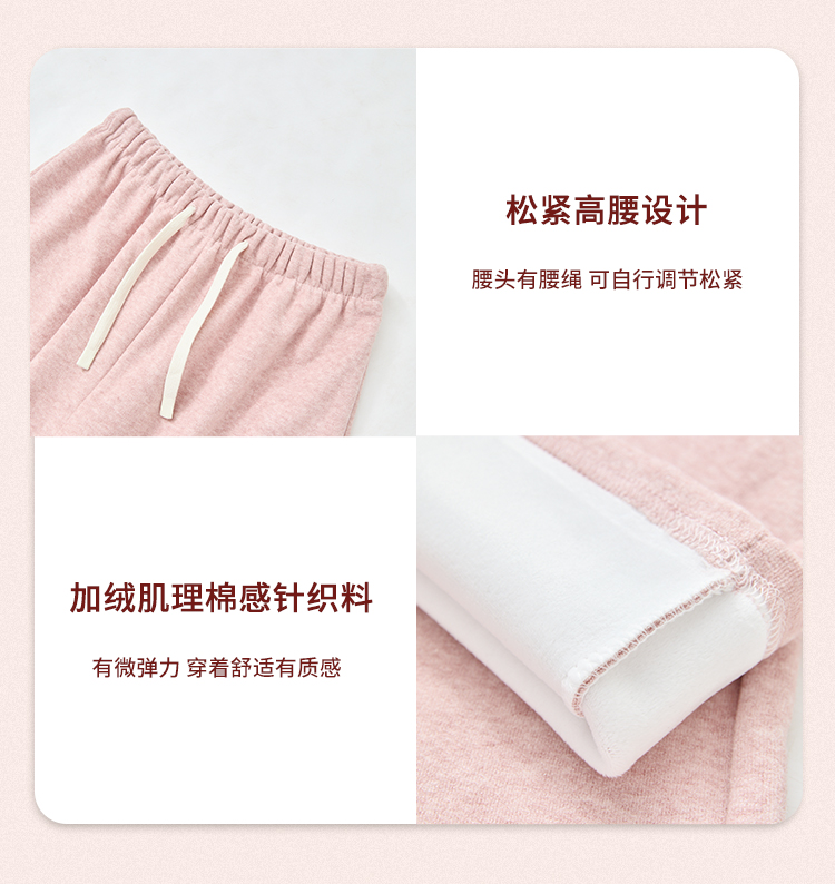西遇粉色加绒加厚阔腿裤女新款休闲宽松小个子直筒卫裤D0044109