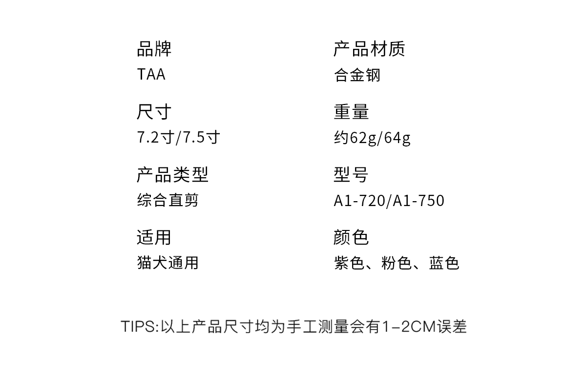 TAA它它宠物美容剪刀专业综合直剪A1-720/A1-750