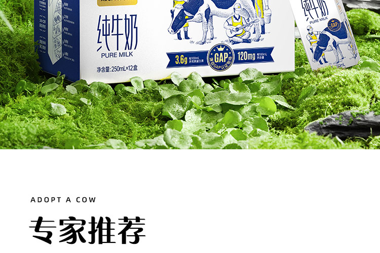 【直发】认养一头牛3.6g蛋白纯奶250ml利乐砖12入两提装110101105206