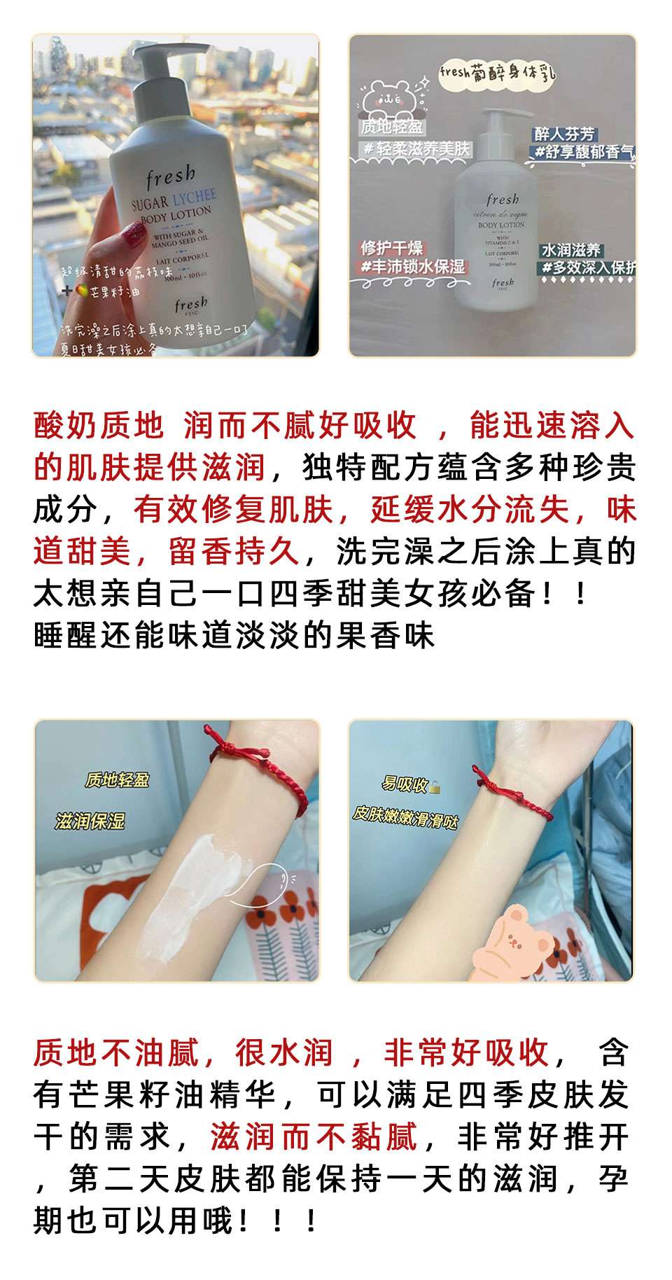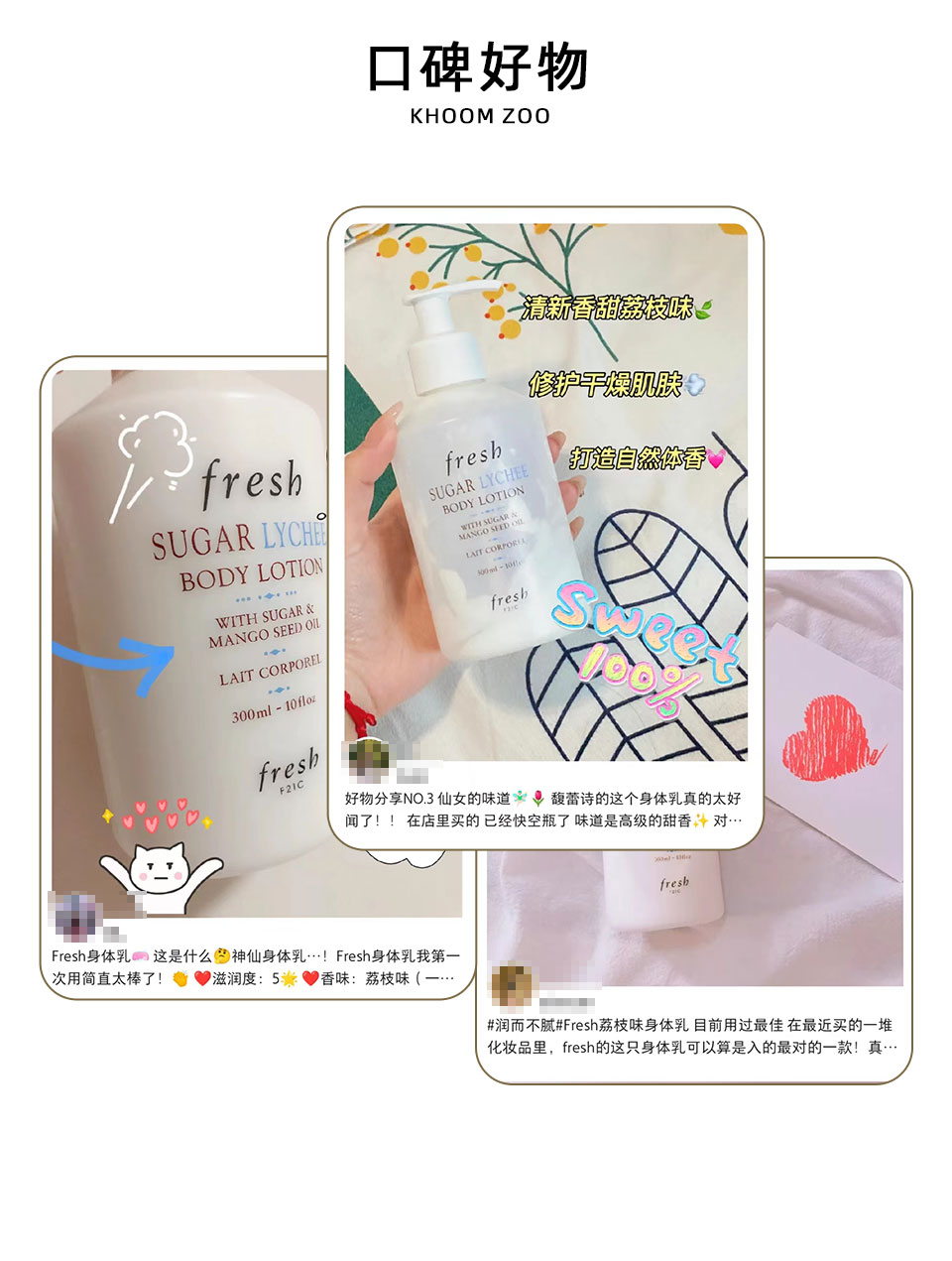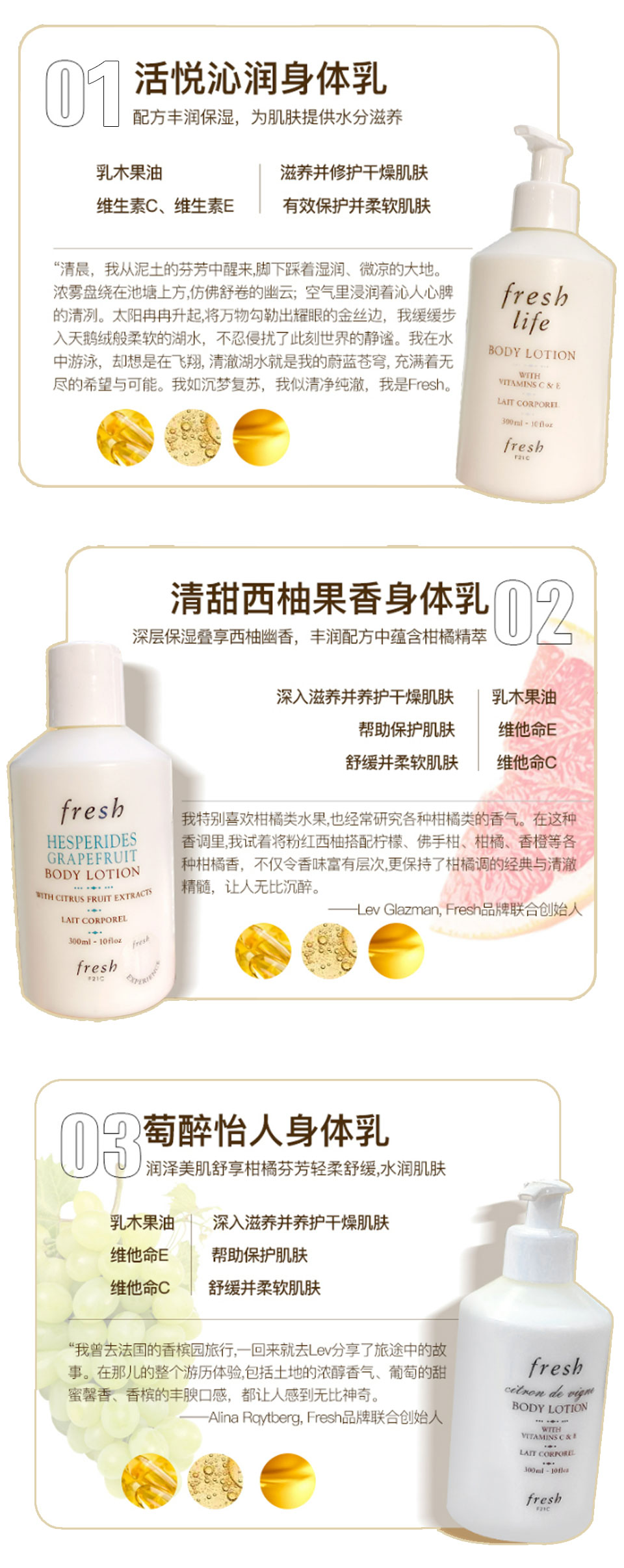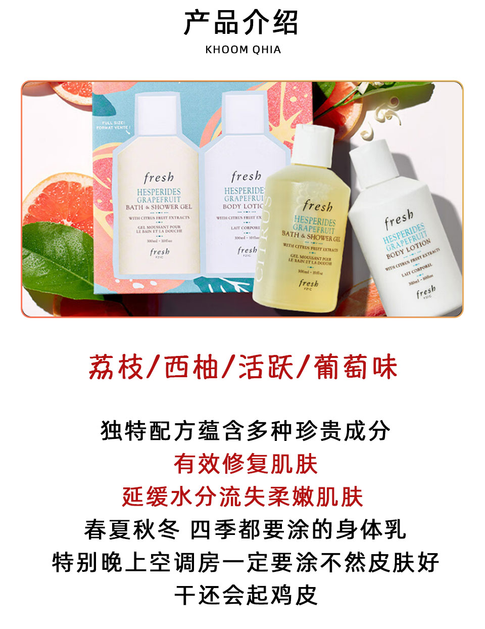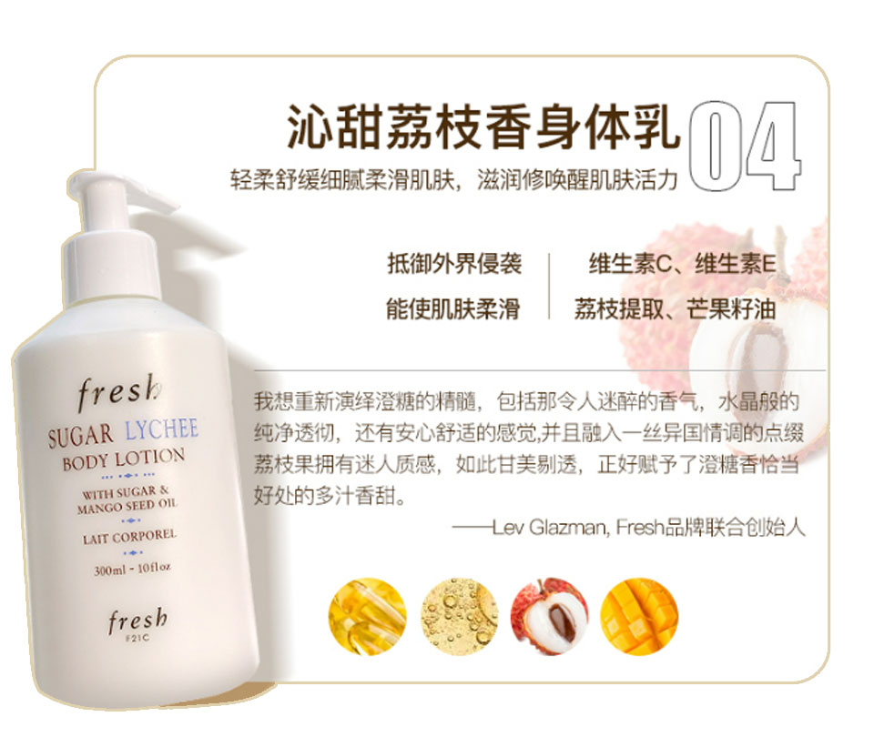 【跨境】Fresh 馥蕾诗 荔枝/葡萄/玫瑰/西柚/铃兰茉莉香 身体乳 300ml 新包装泵头款