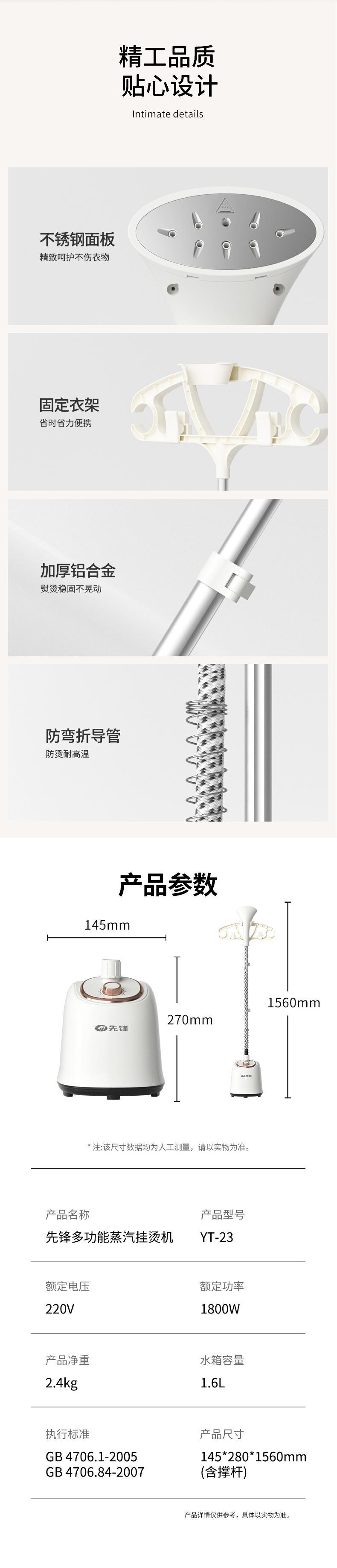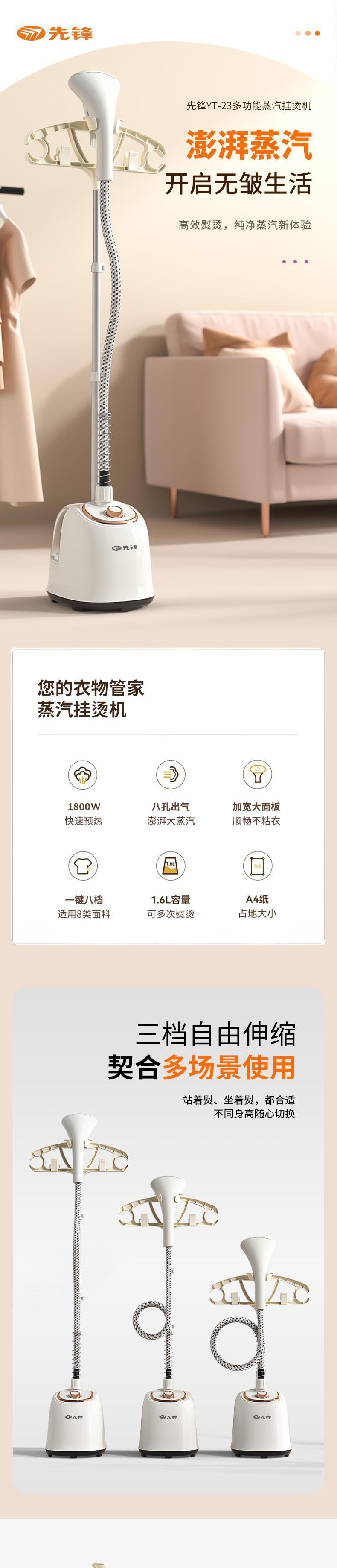 【自营】先锋多功能蒸汽挂烫机YT-23手持挂烫机熨烫机便携除皱不伤衣平挂两用