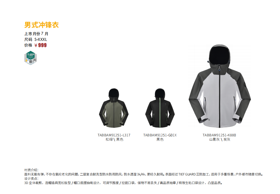 探路者男式冲锋衣TABBAM91251
