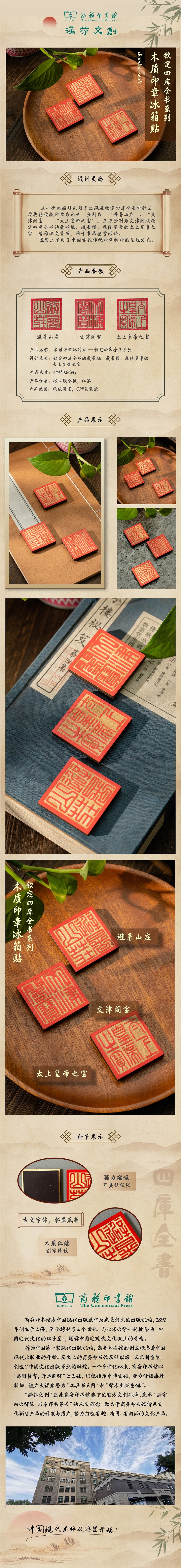 【商务印书馆涵芬文创】四库全书 木质印章冰箱贴