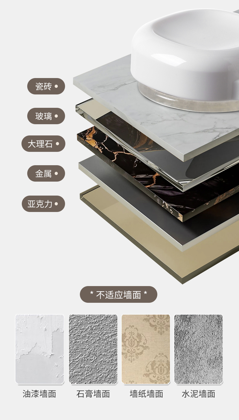 FaSoLa免打孔浴室镜挂墙镜子浴室镜卫生间厕所壁挂梳妆镜化妆镜