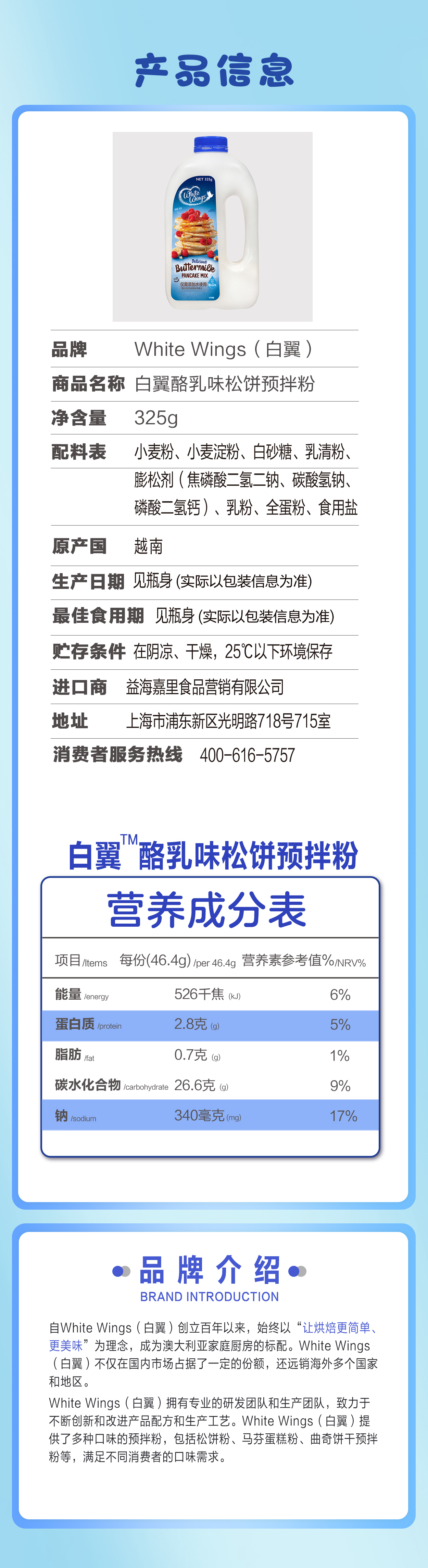 【买就送酪乳味预拌粉1瓶,到手3瓶】白翼原味*1+酪乳味*1松饼预拌粉组合装