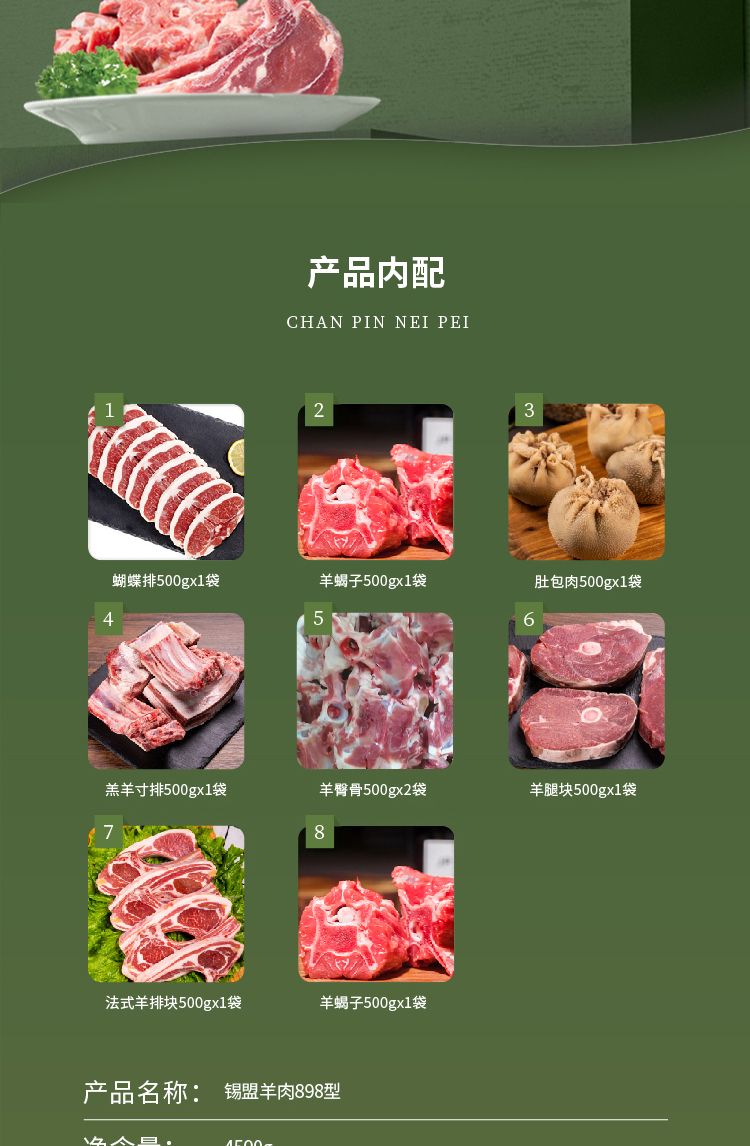 丁小宴锡盟羊肉898型4500g【实物/卡券】