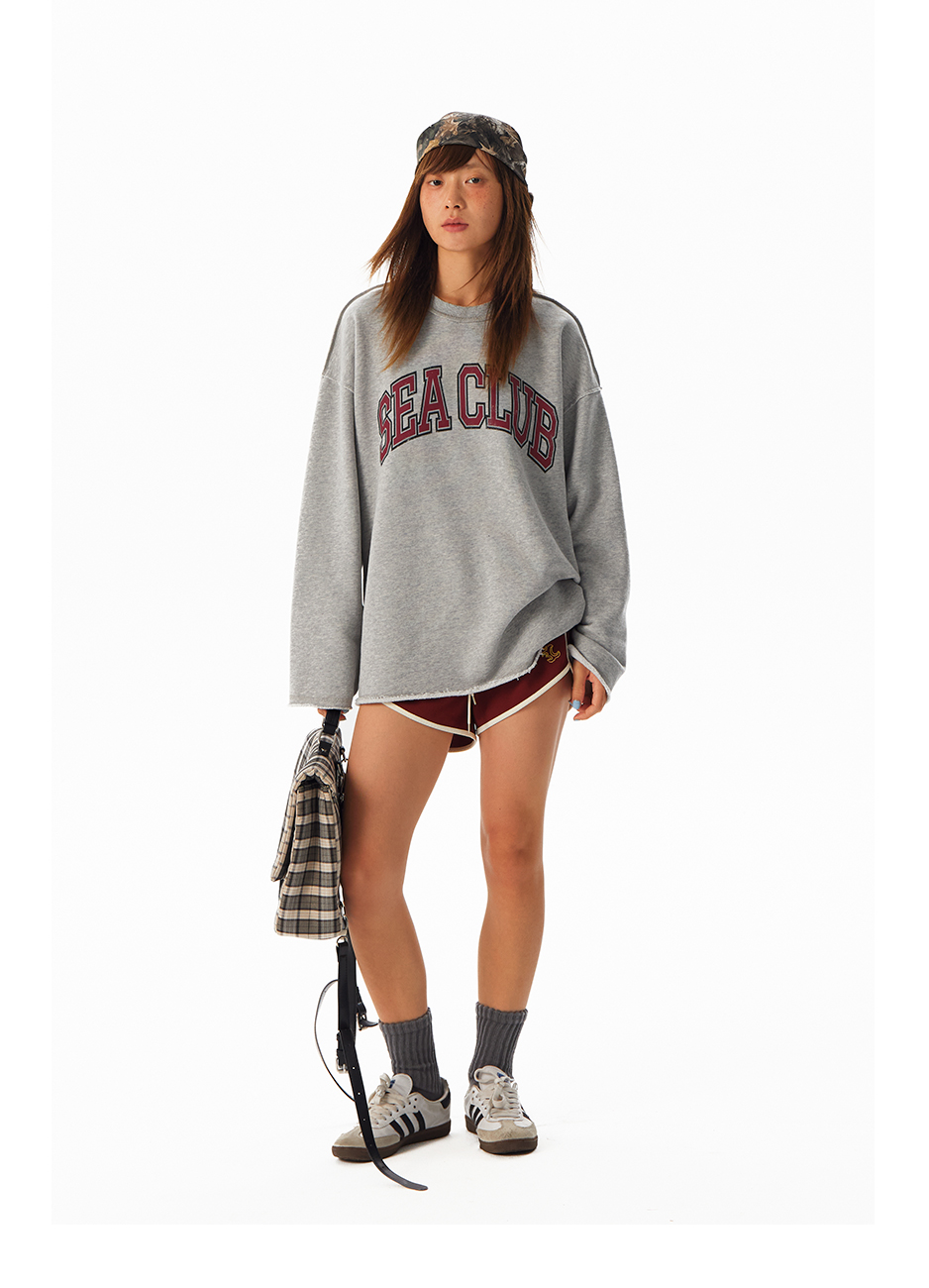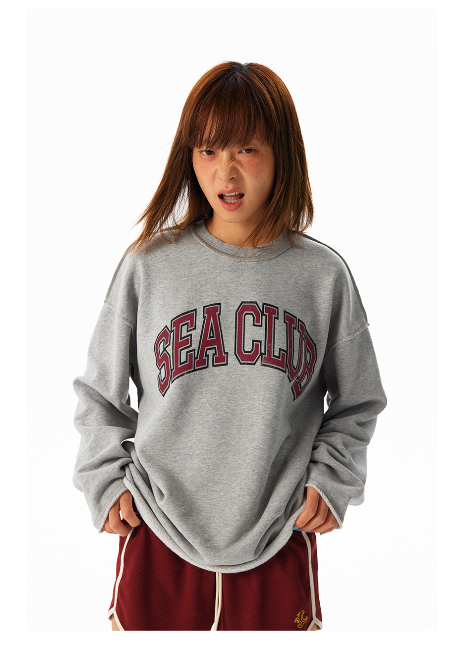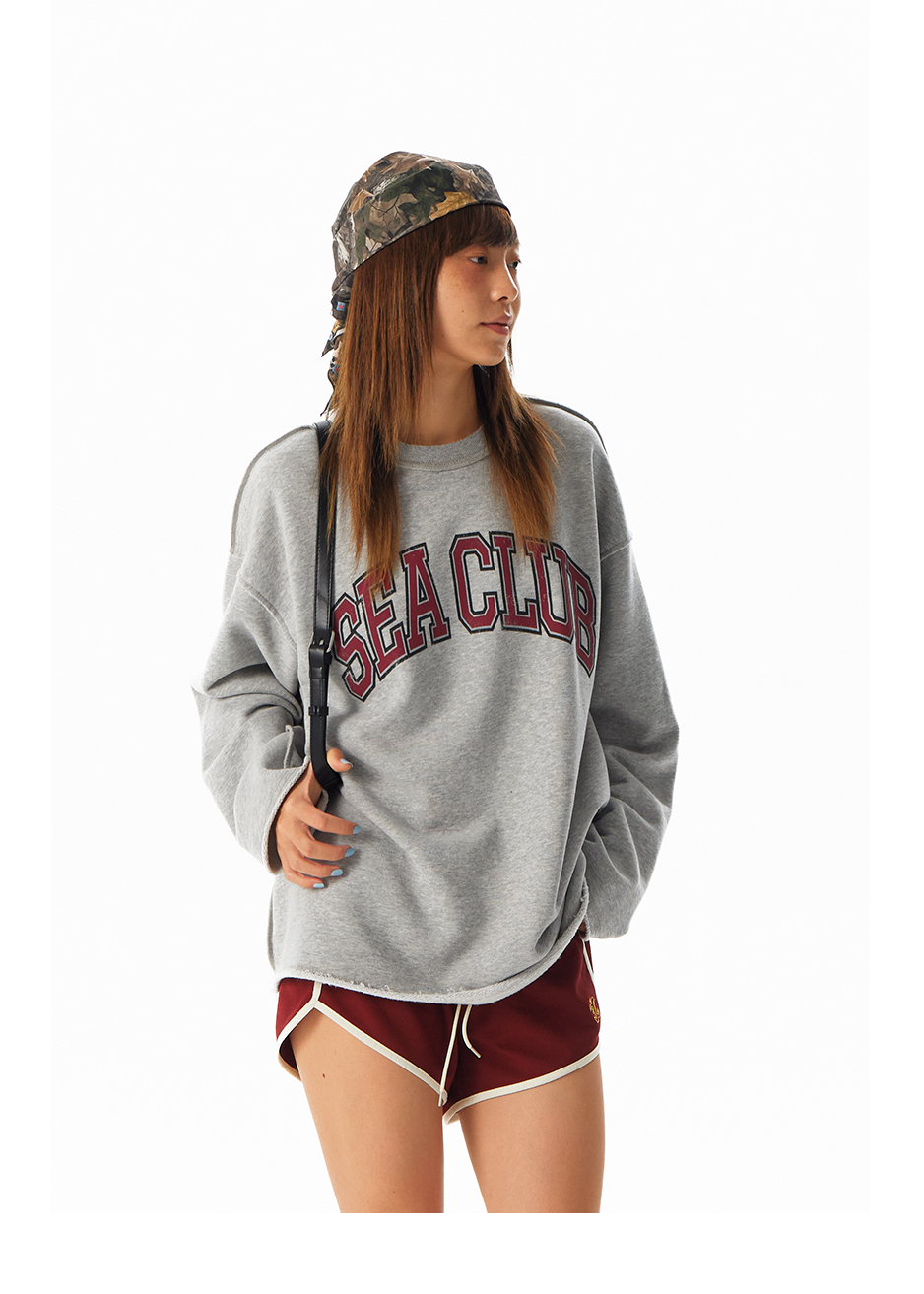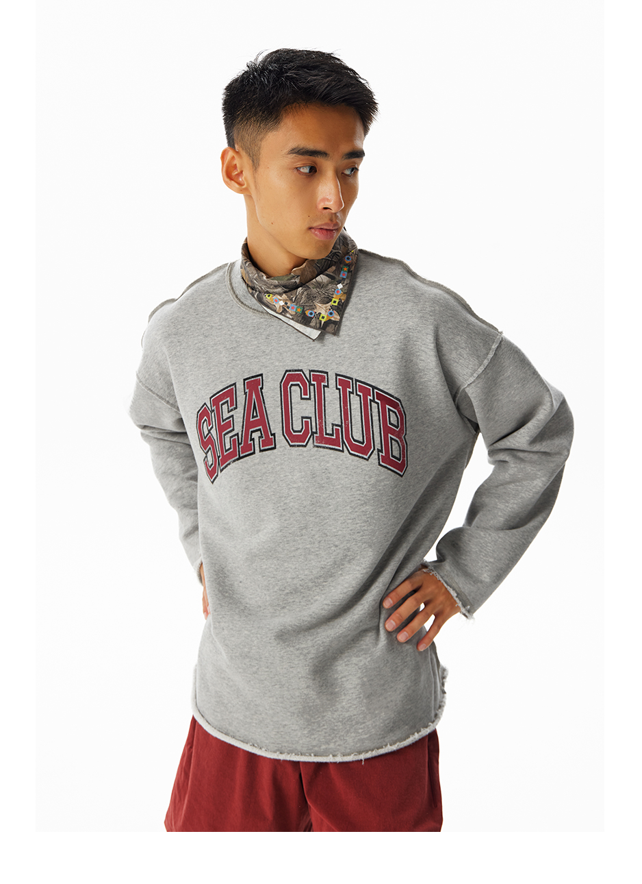 CryingCenter学院风软糯蓬松复古字翻转毛边卫衣 海组 SEA CLUB
