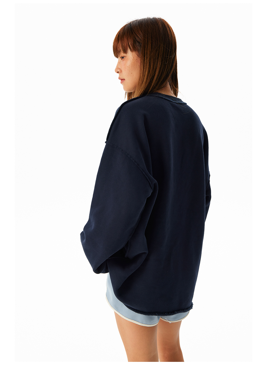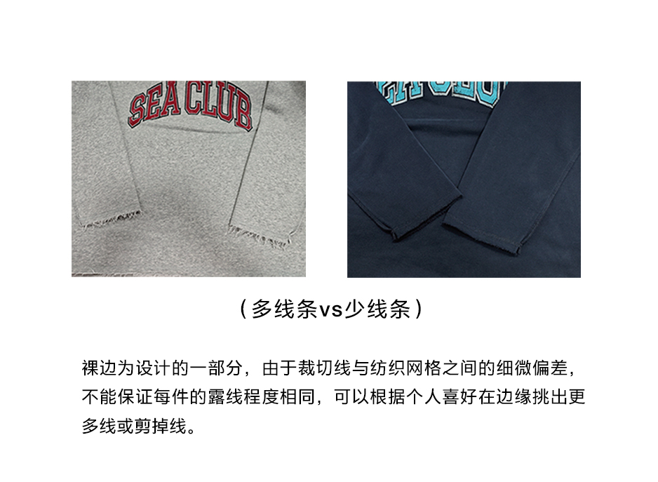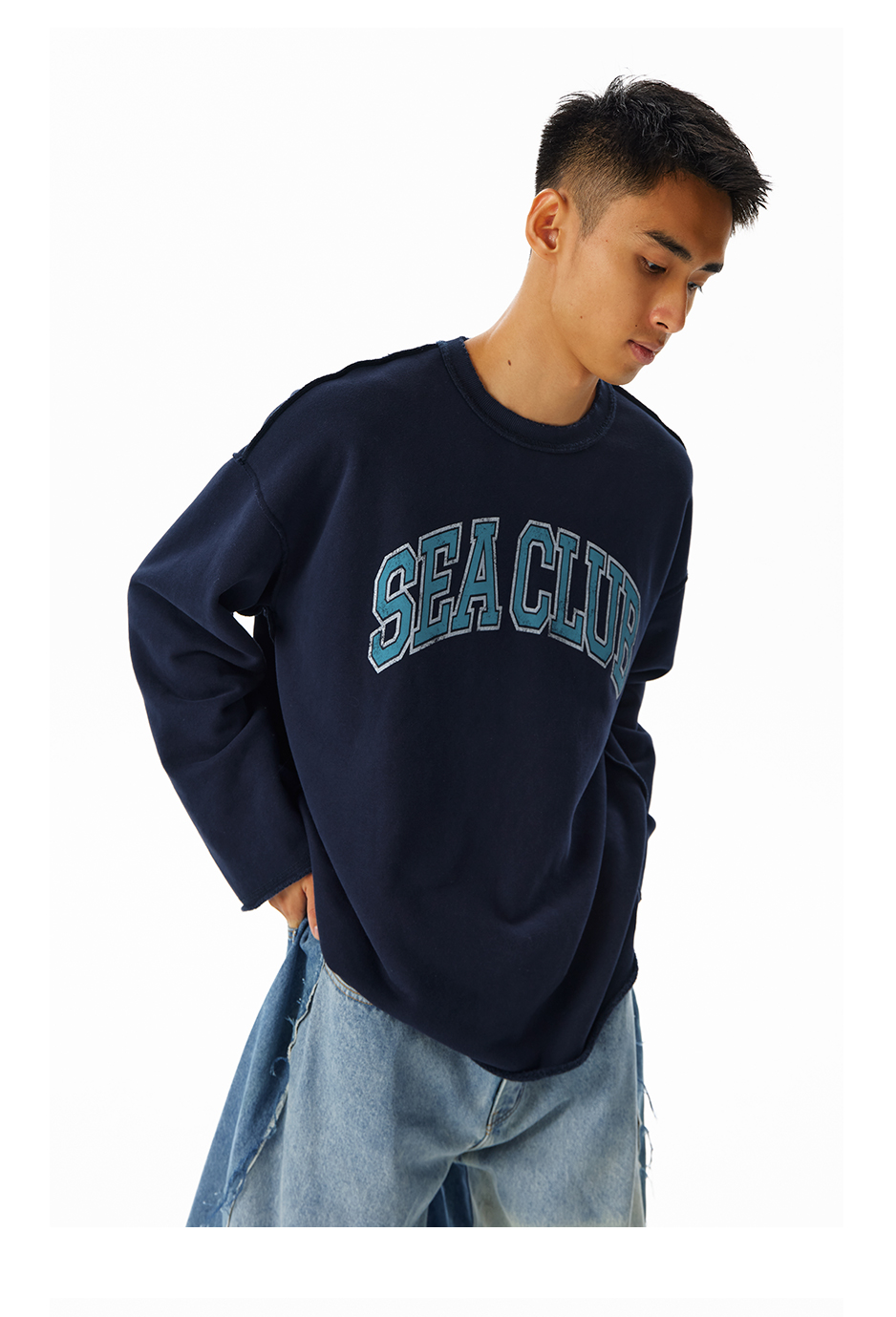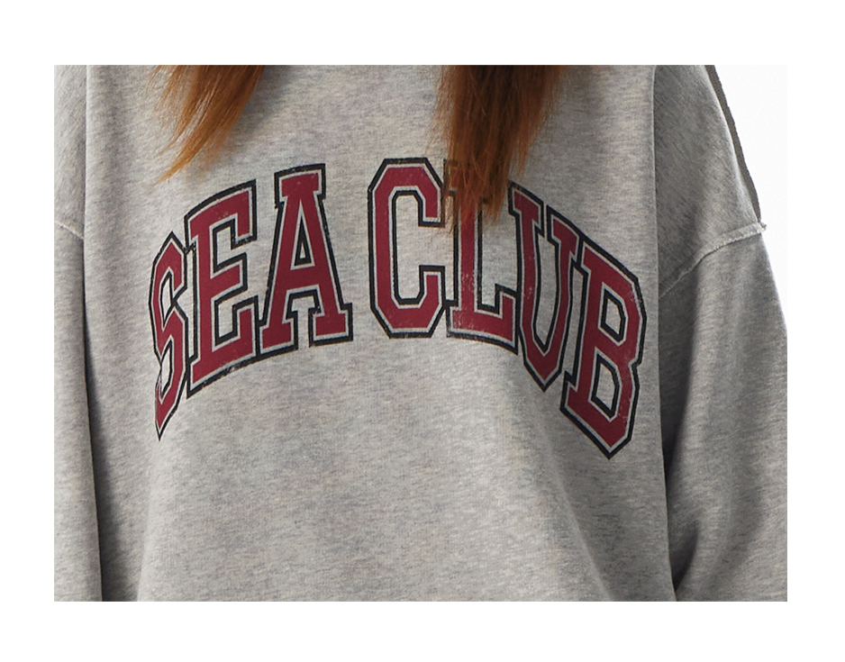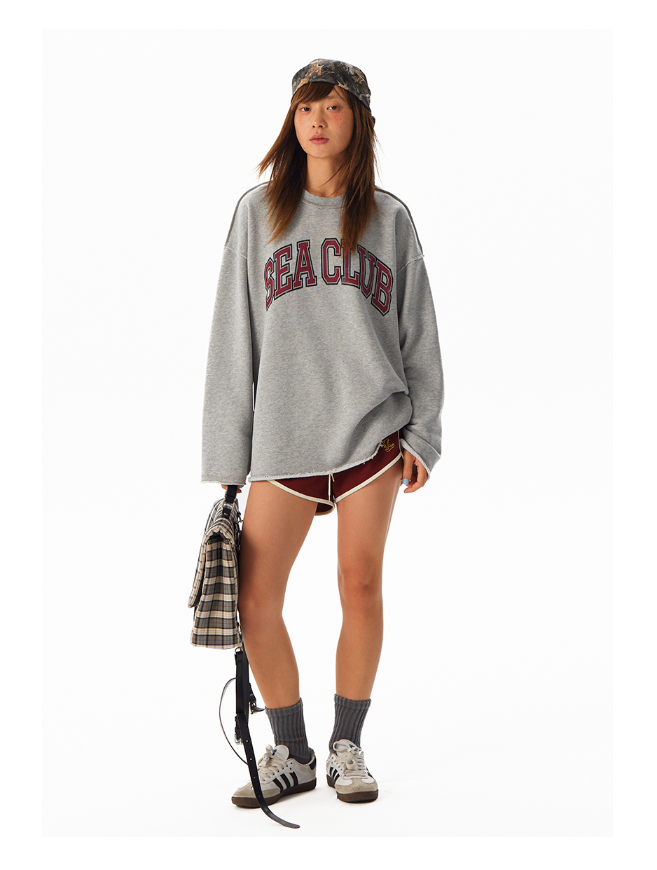 CryingCenter学院风软糯蓬松复古字翻转毛边卫衣 海组 SEA CLUB