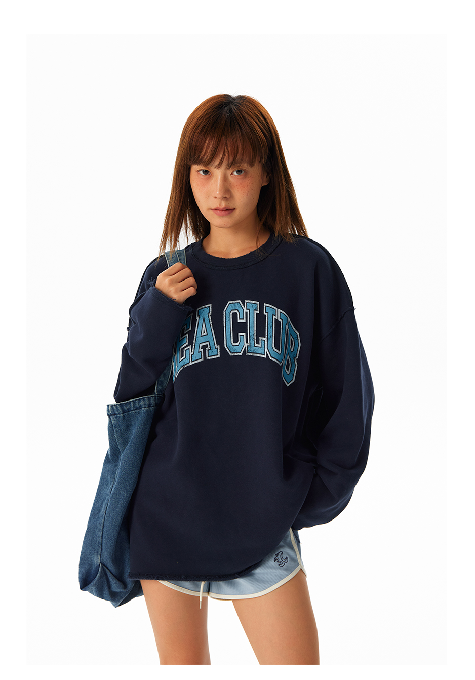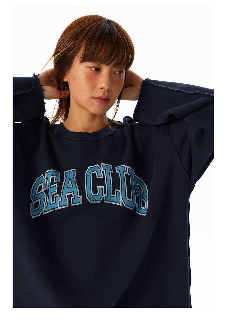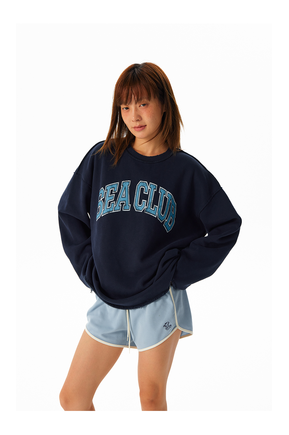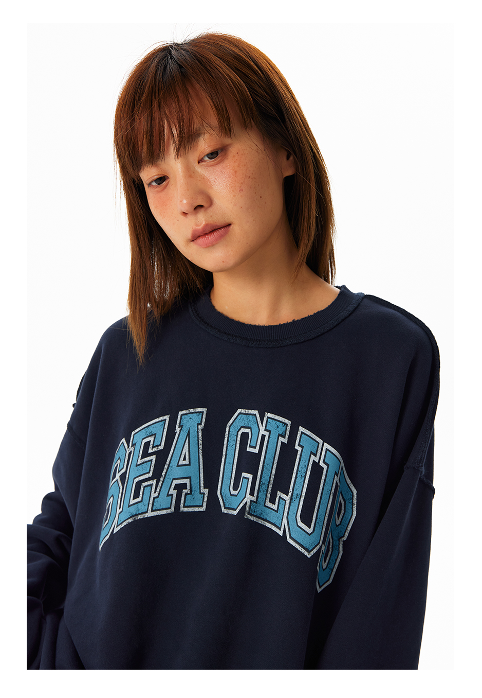 CryingCenter学院风软糯蓬松复古字翻转毛边卫衣 海组 SEA CLUB
