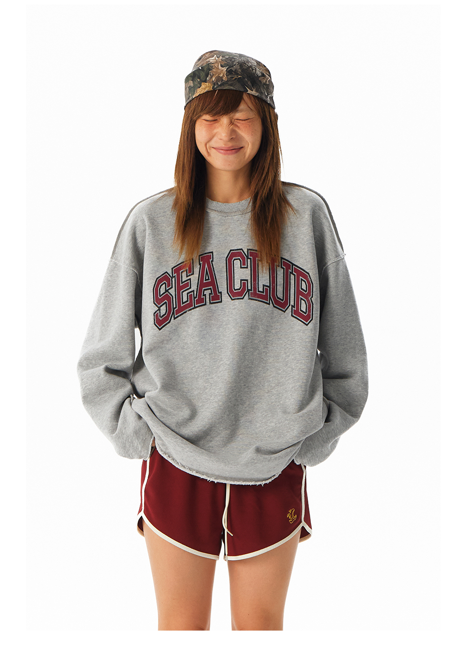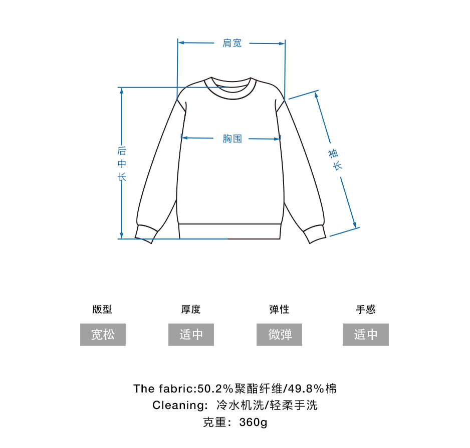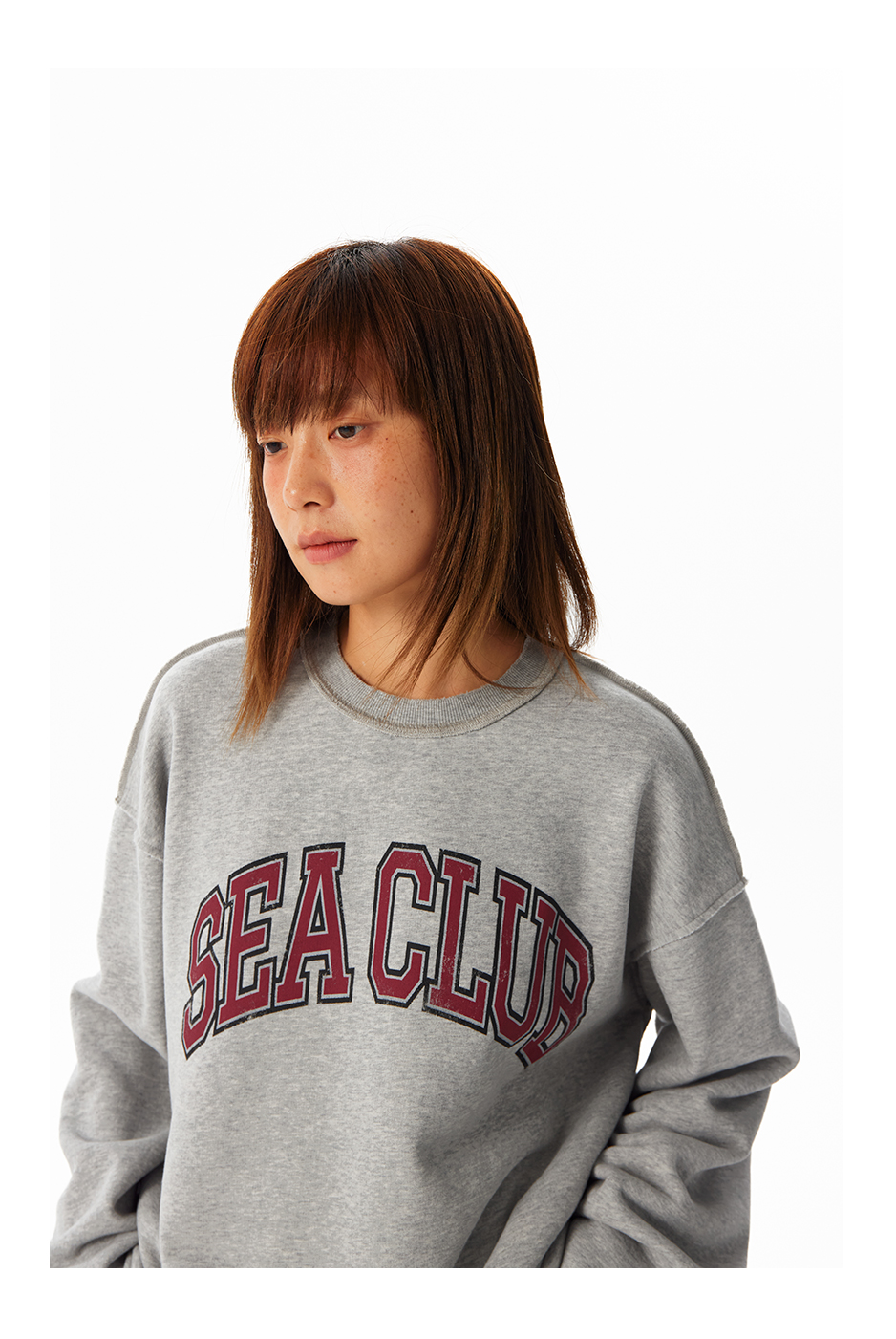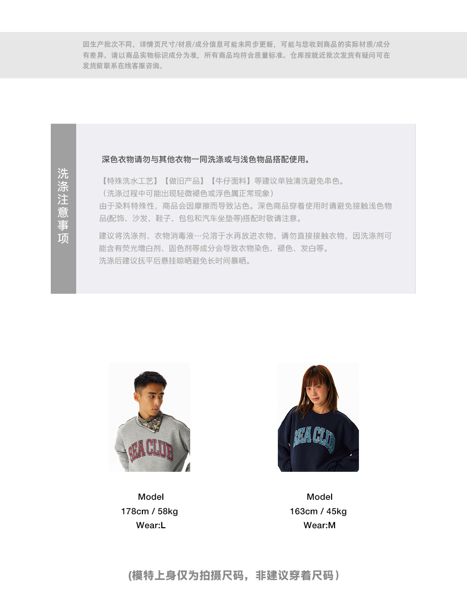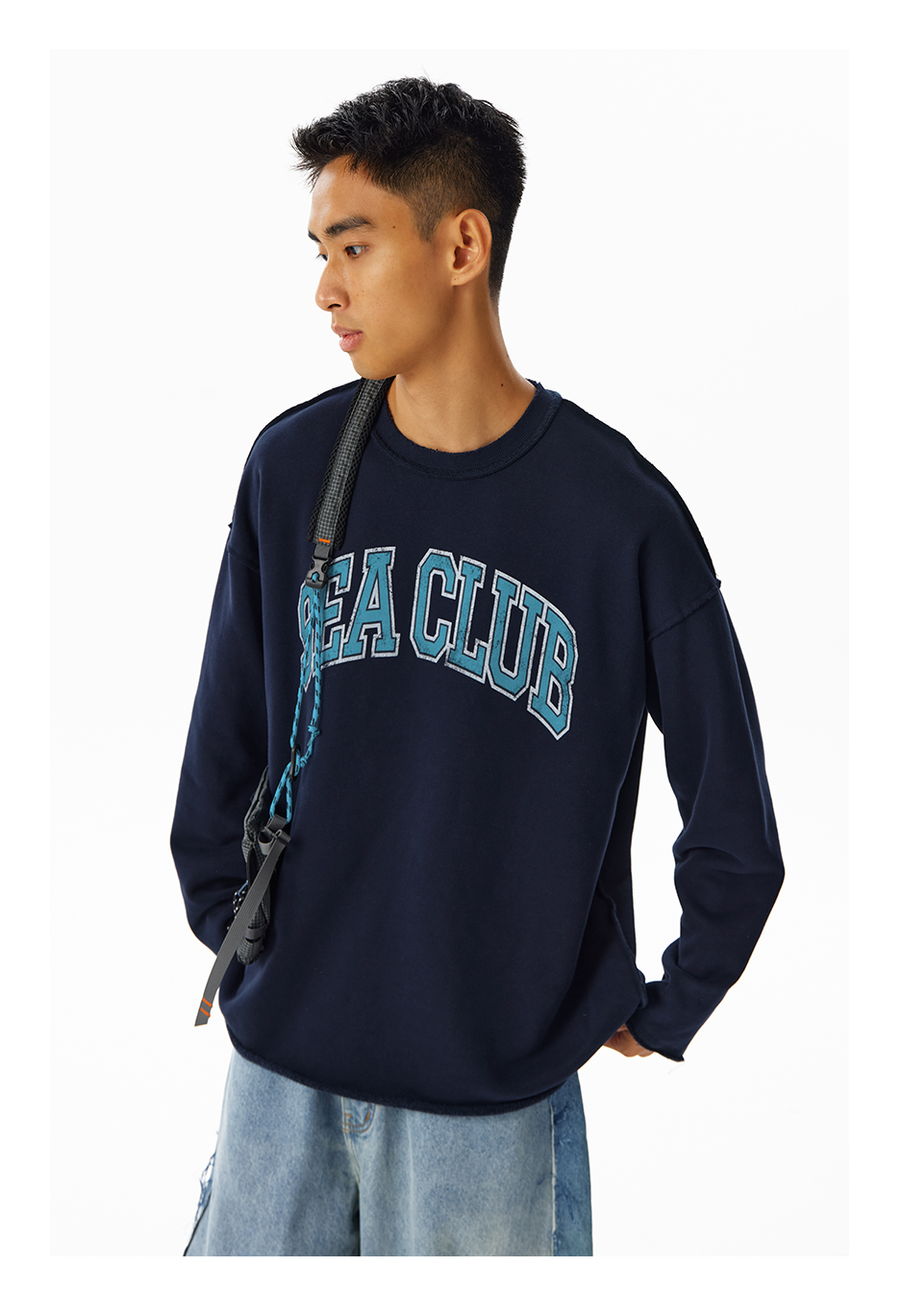 CryingCenter学院风软糯蓬松复古字翻转毛边卫衣 海组 SEA CLUB