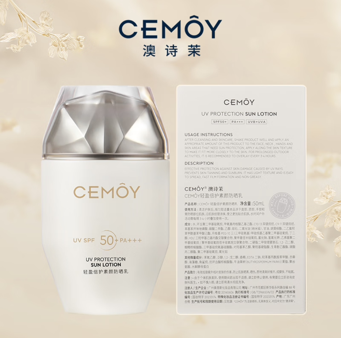 CEMOY澳诗茉轻盈倍护素颜防晒乳50ml