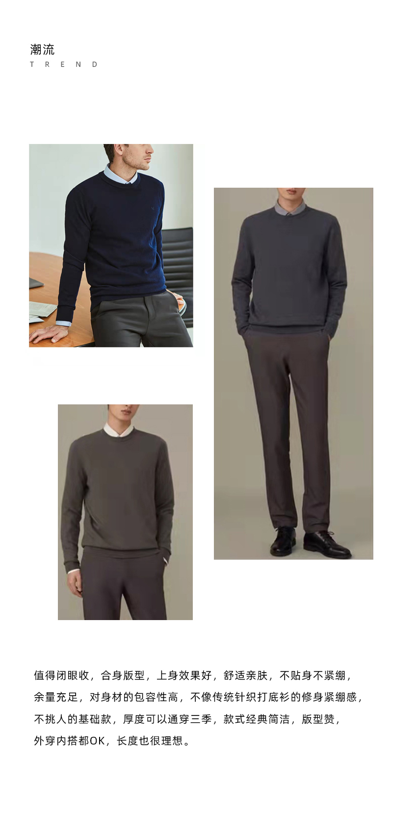 【断码清仓 不退不换】【100%绵羊毛】男款圆领【超细美丽诺纯羊毛衫】通勤打底外穿针织衫H221090158 (现货 )