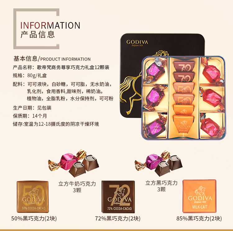 歌帝梵 商务尊享巧克力礼盒12颗装 218型