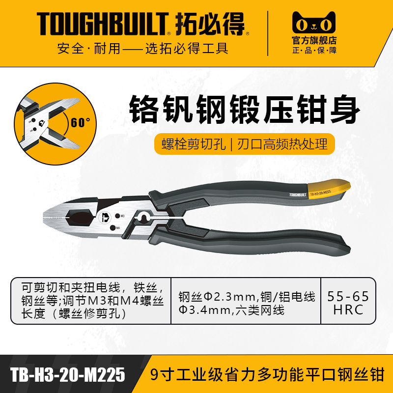 9寸工业级省力多功能平口钢丝钳拓必得省力虎口钳子TB-H3-20-M225