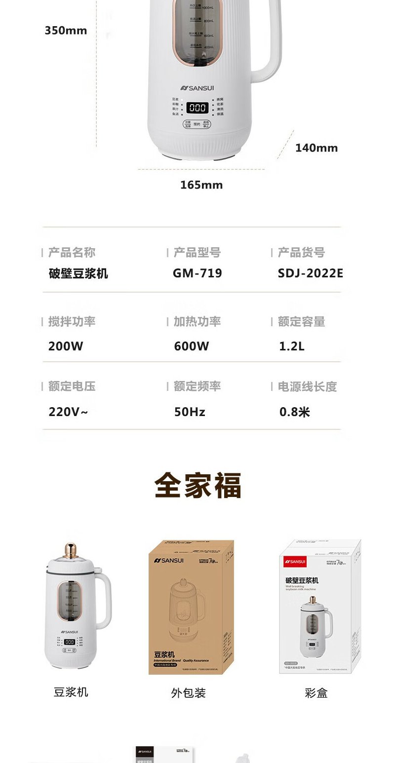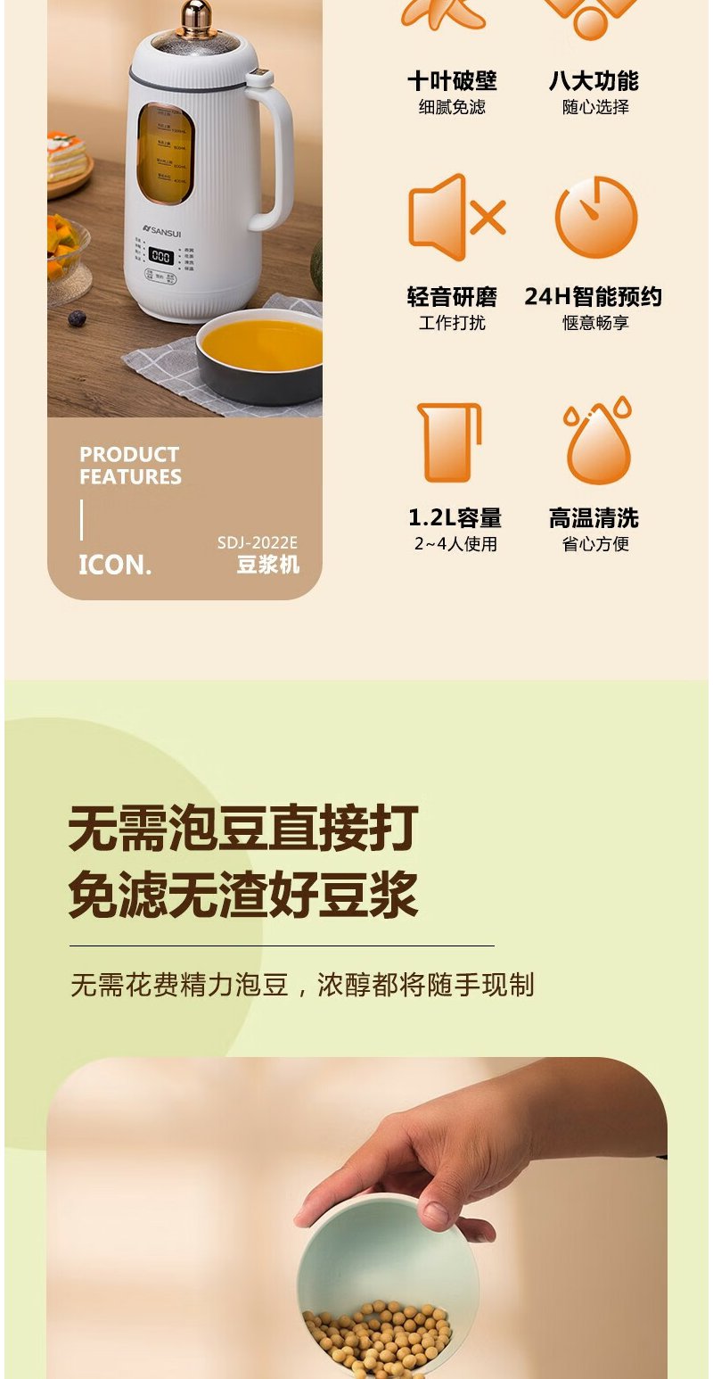 山水(SANSUI)豆浆机 SDJ-2022E 白色