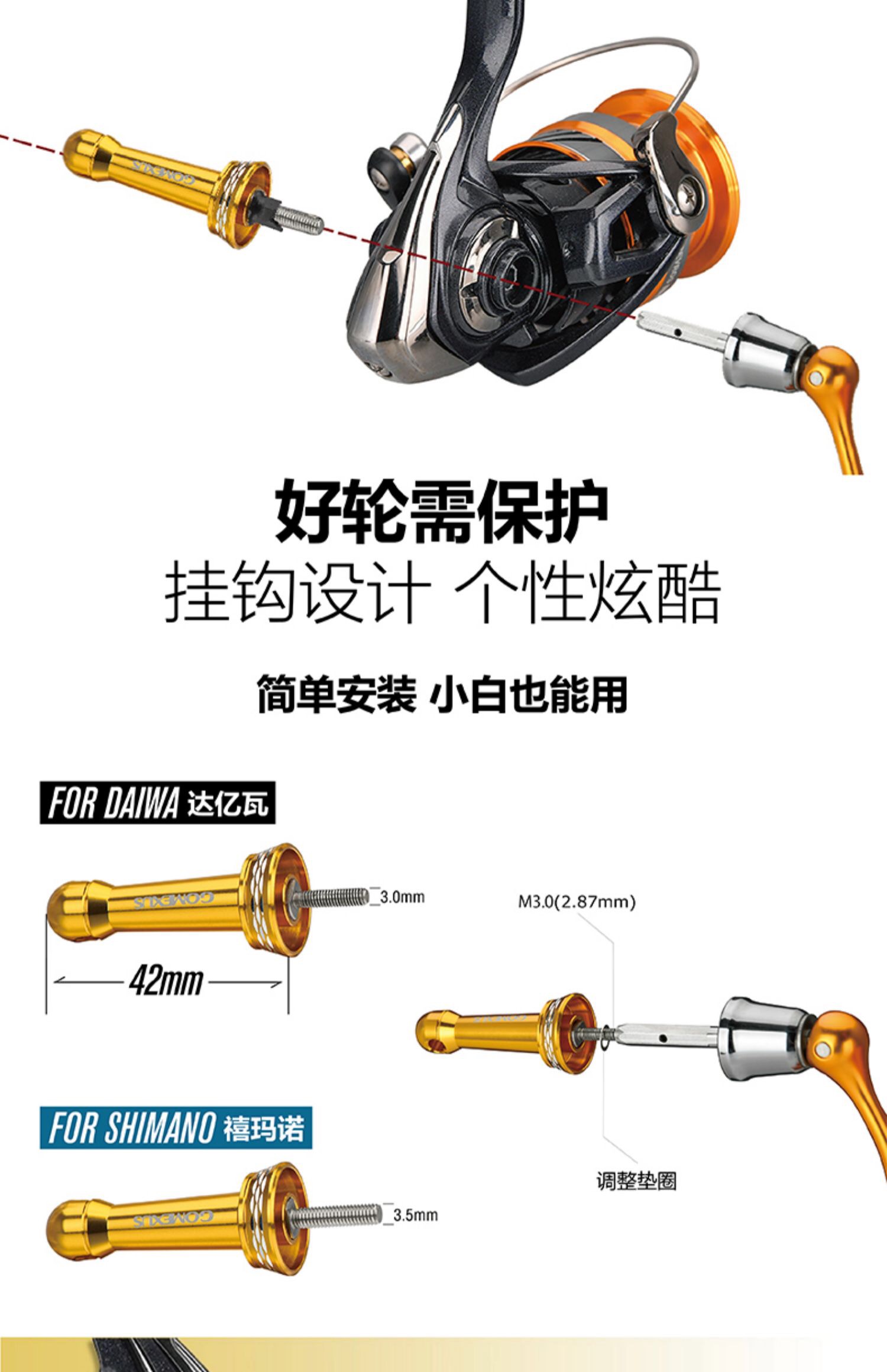 Gomexus革梦士达瓦Regal对锁鱼线轮四棱六棱平衡柱支撑改装配件