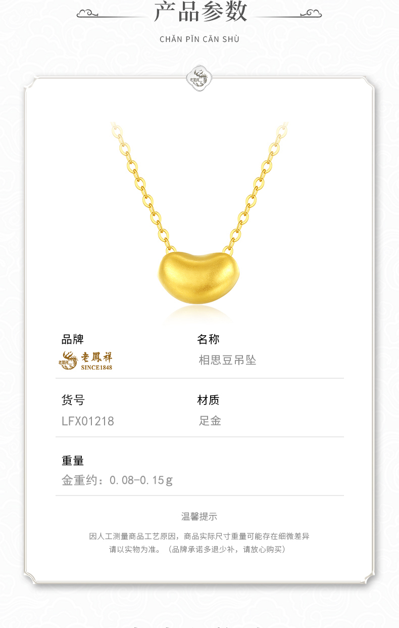 优选丨【老凤祥】足金三生有幸吊坠LFXLY0151/足金爱心吊坠LFX01217/ 足金相思豆吊坠LFX01218/足金羽毛吊坠LFX01216(赠S925银项链)