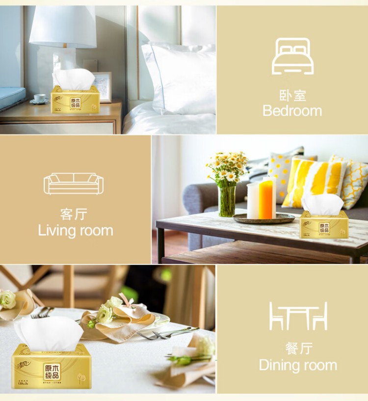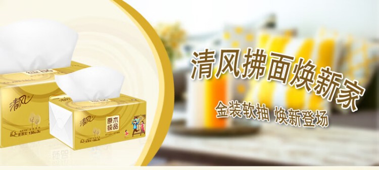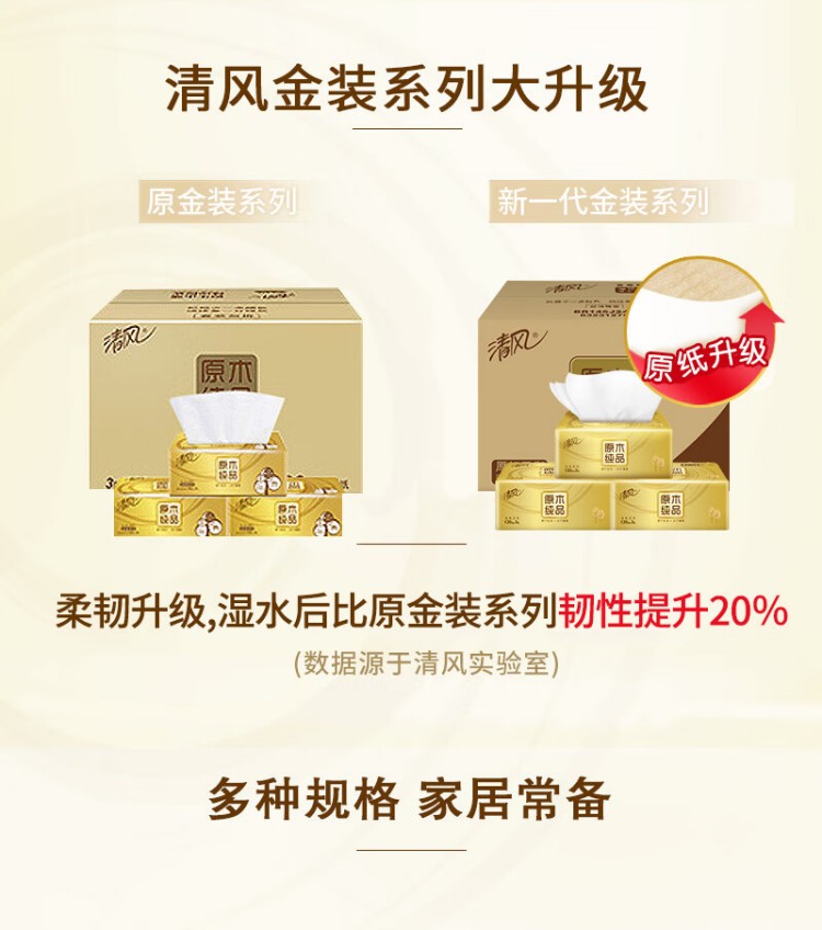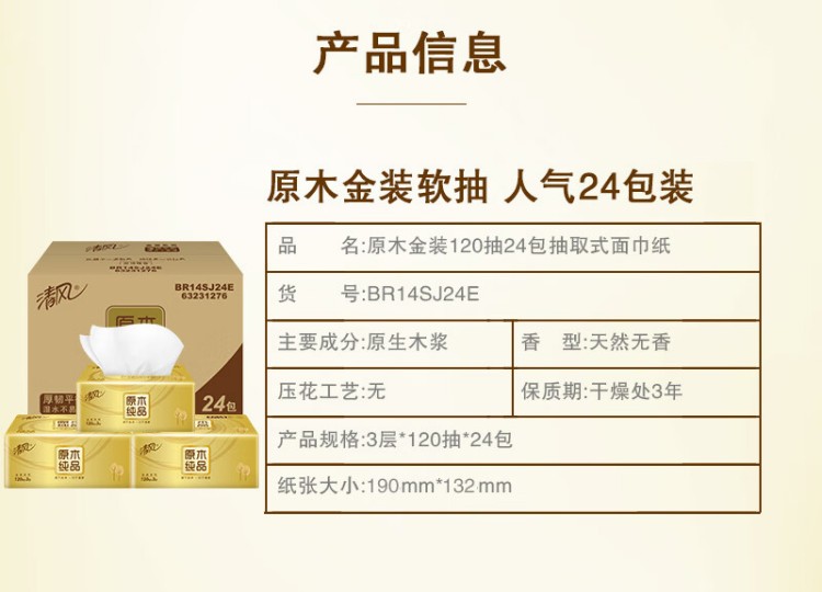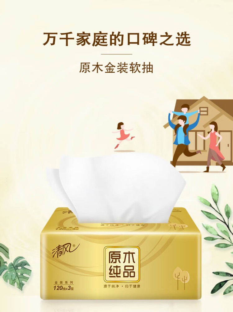 (整箱)清风原木金装系列 3层120抽抽取式面纸24包(4包/提*6提)