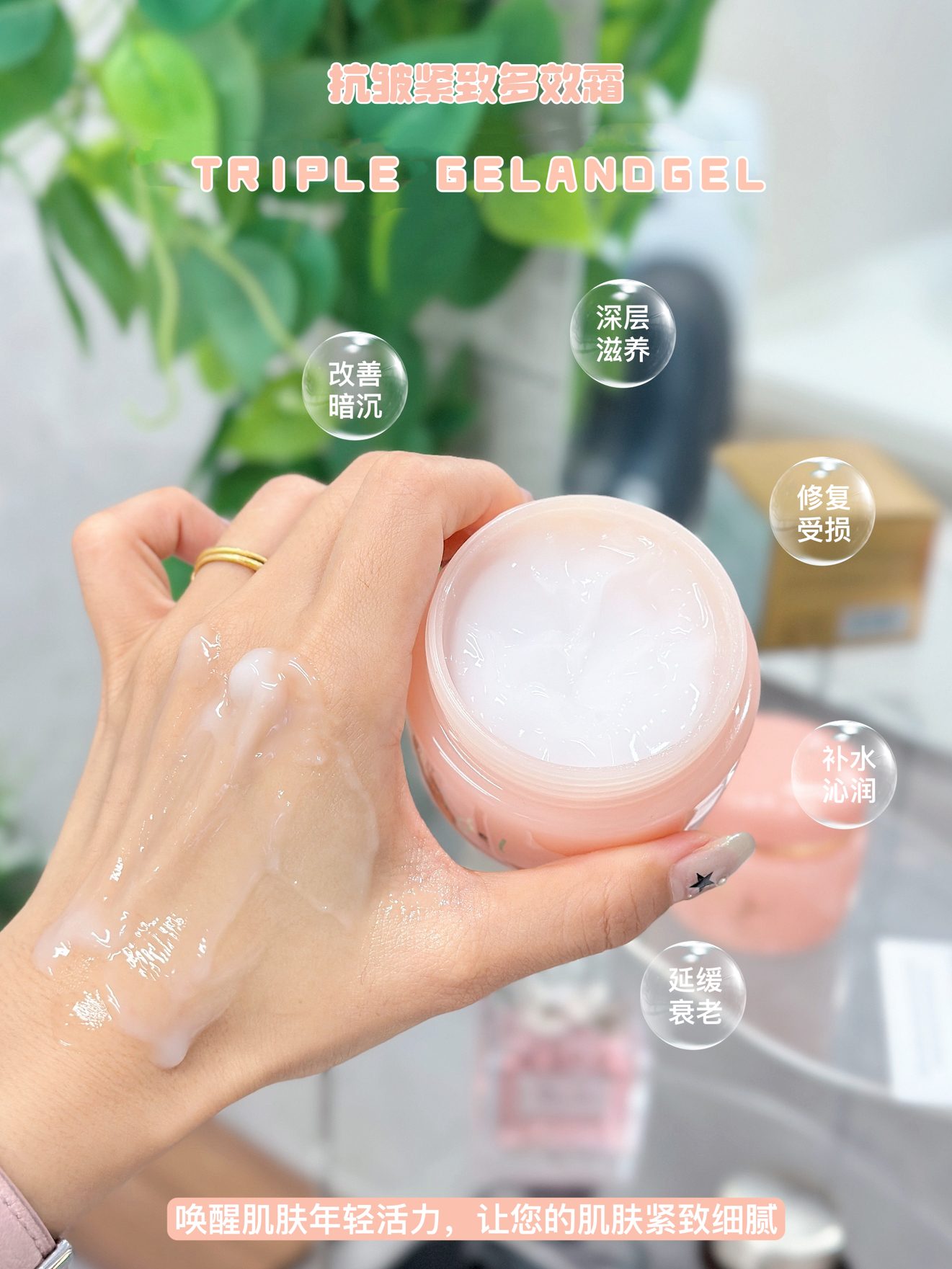 🔥 垮脸人的福音!【TRIPLE GELANDGEL多效合一面霜抗皱款】 著名院线参与研发的贵妇级面霜! 0防腐0香精,专为敏感肌研发 抗皱紧致款:紧致肌肤,保湿淡纹