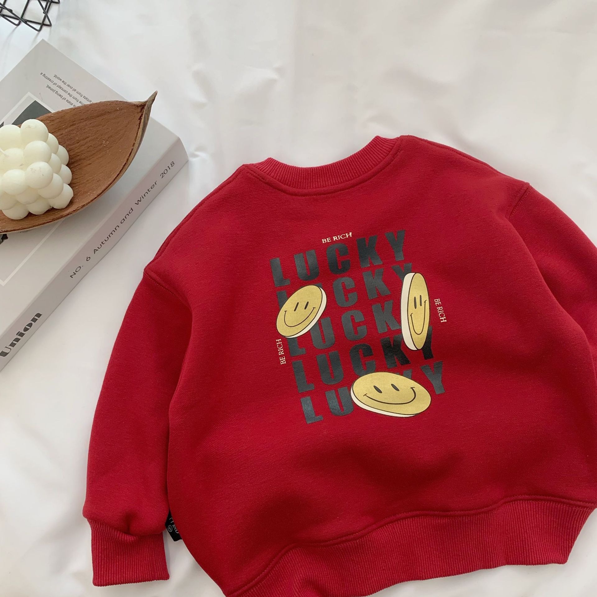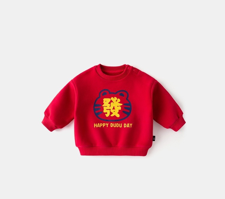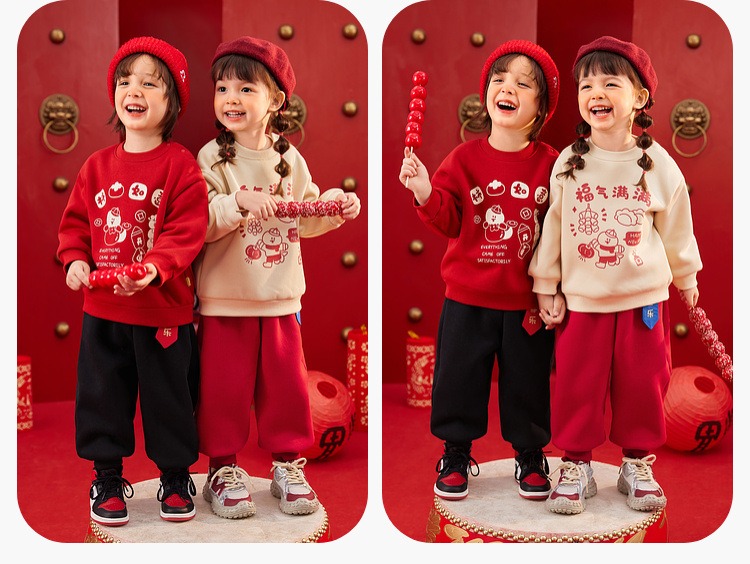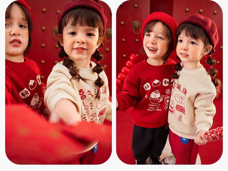 【过新年穿新衣】59.9元任选2件儿童加绒新年红色上衣卫衣年服多巴胺男童女童“蛇年大吉‘新年年服