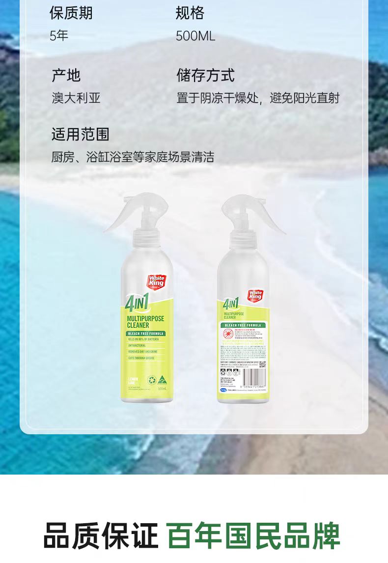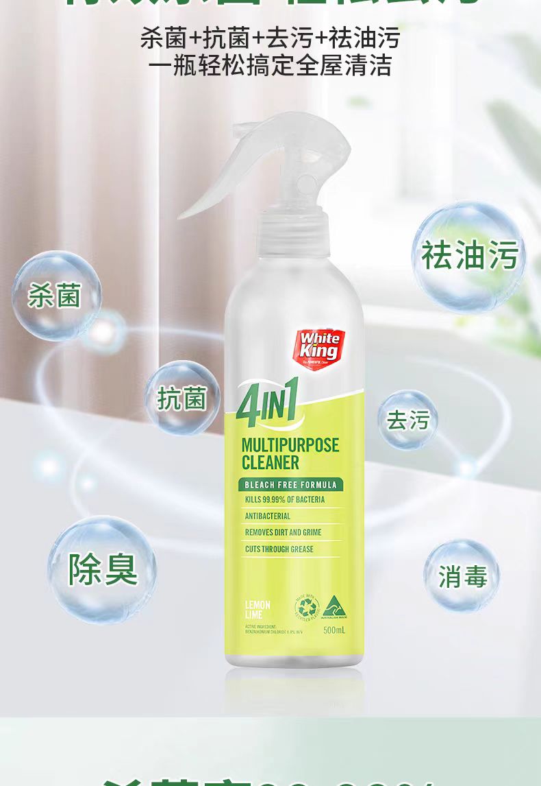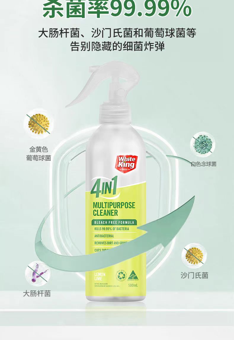 洁白王杀菌去渍除油多功能四合一清洁剂500ml