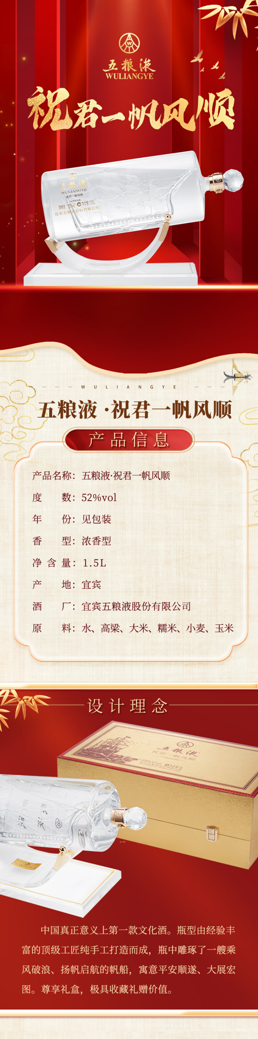 【年货节】2022年份 五粮液 复刻系列 祝君一帆风顺 浓香型 52度 1.5L