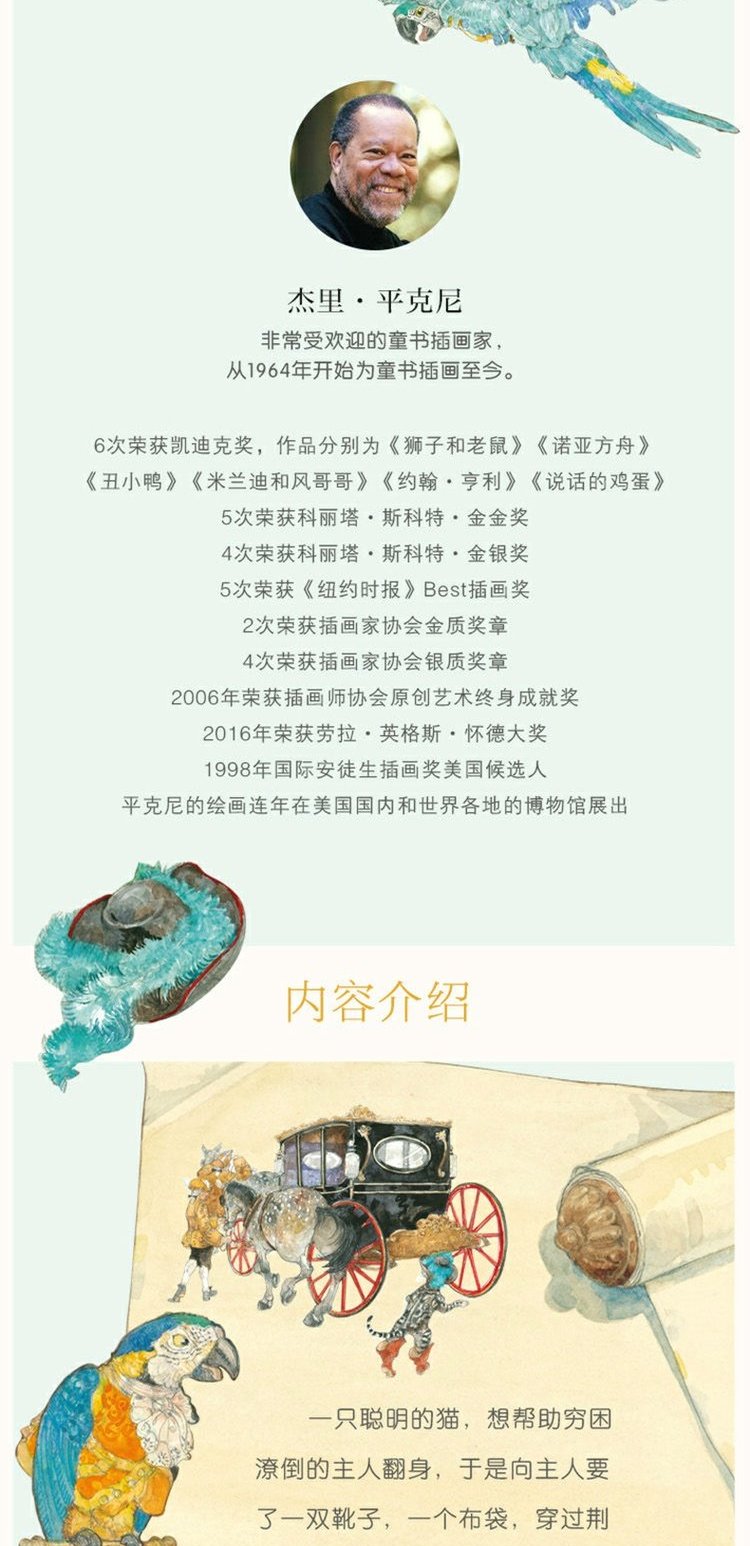 穿靴子的猫 杰里平克尼经典精装硬壳绘本让孩子了解绅士风度骑士文化幼儿园小学生一年级课外书阅读推荐幼儿早教启蒙图画书