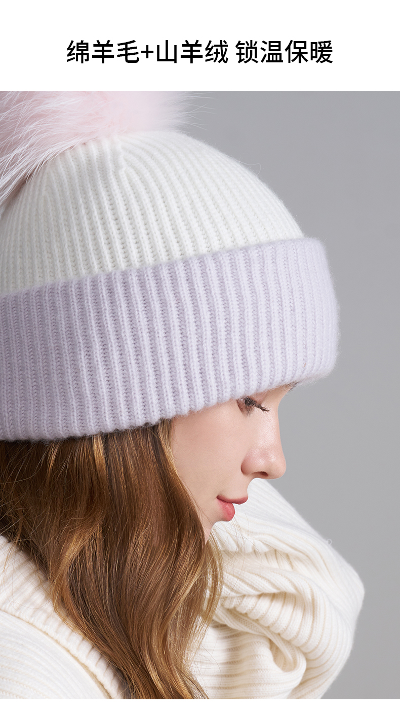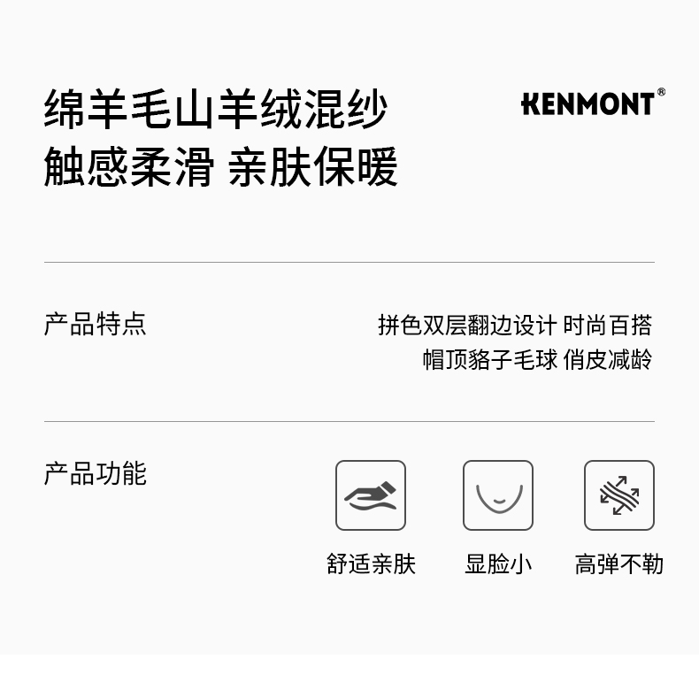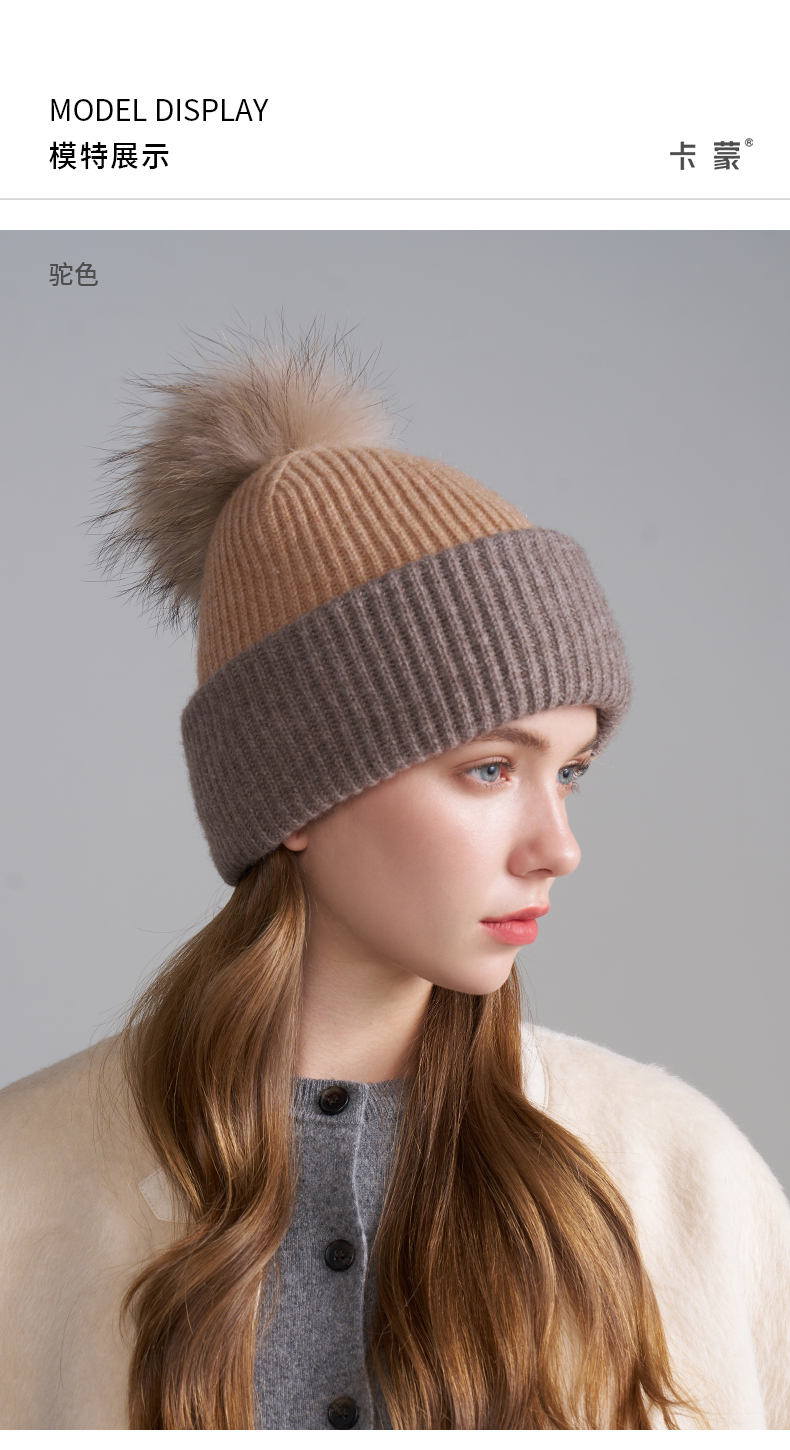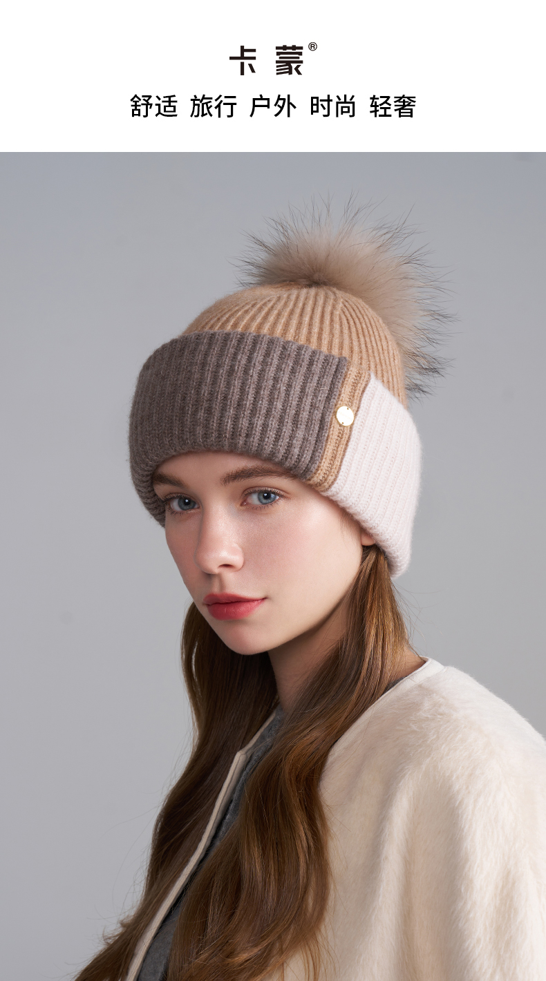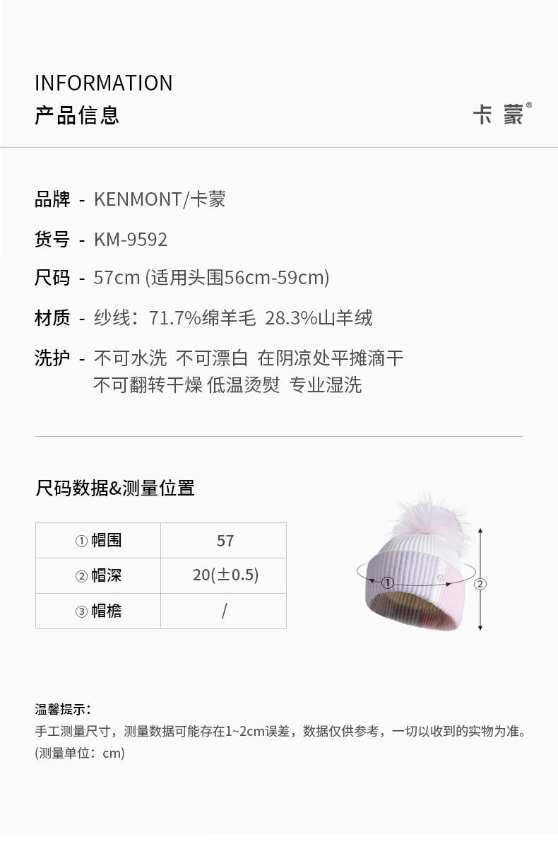 卡蒙帽子绵羊毛针织帽女大头围显脸小毛球毛线帽登山防寒KM-9592