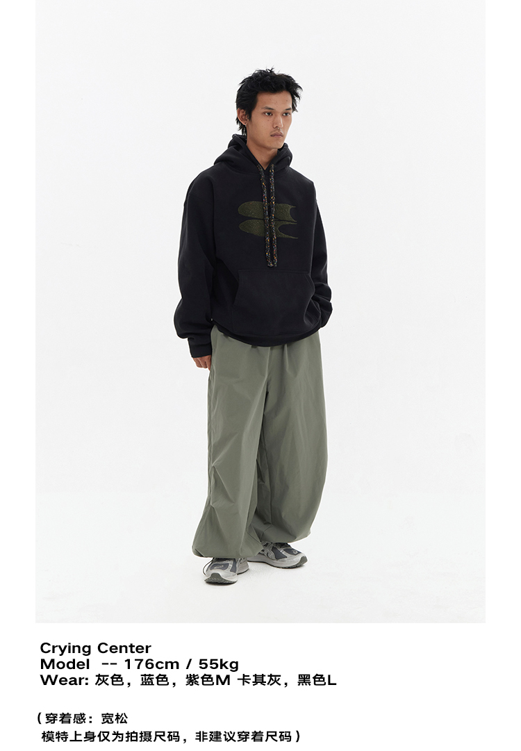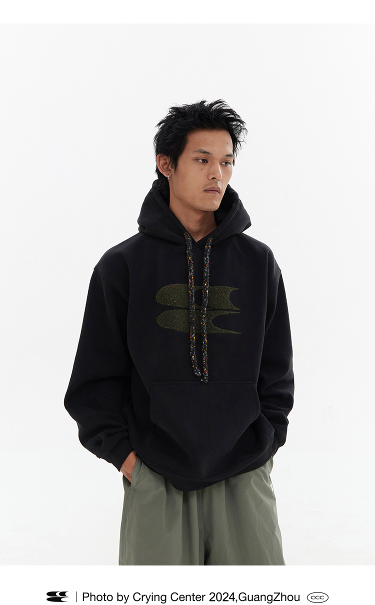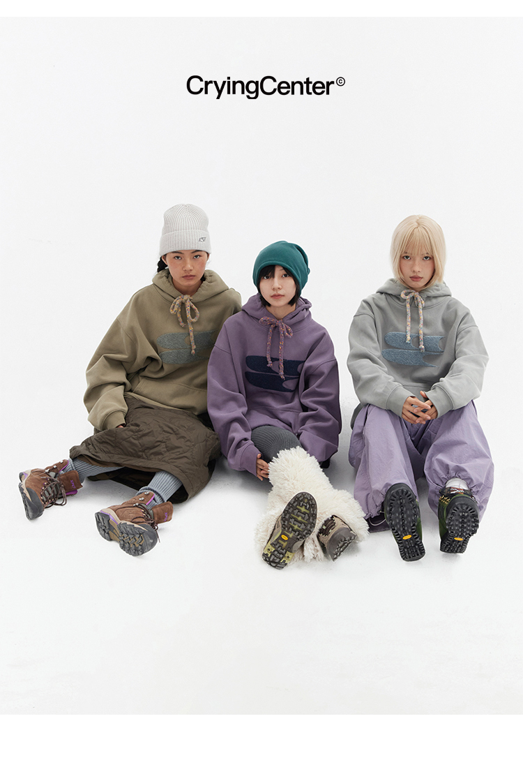 CryingCenter 秋冬连帽毛巾绣logo彩点抽绳加绒加厚卫衣 哭喊中心
