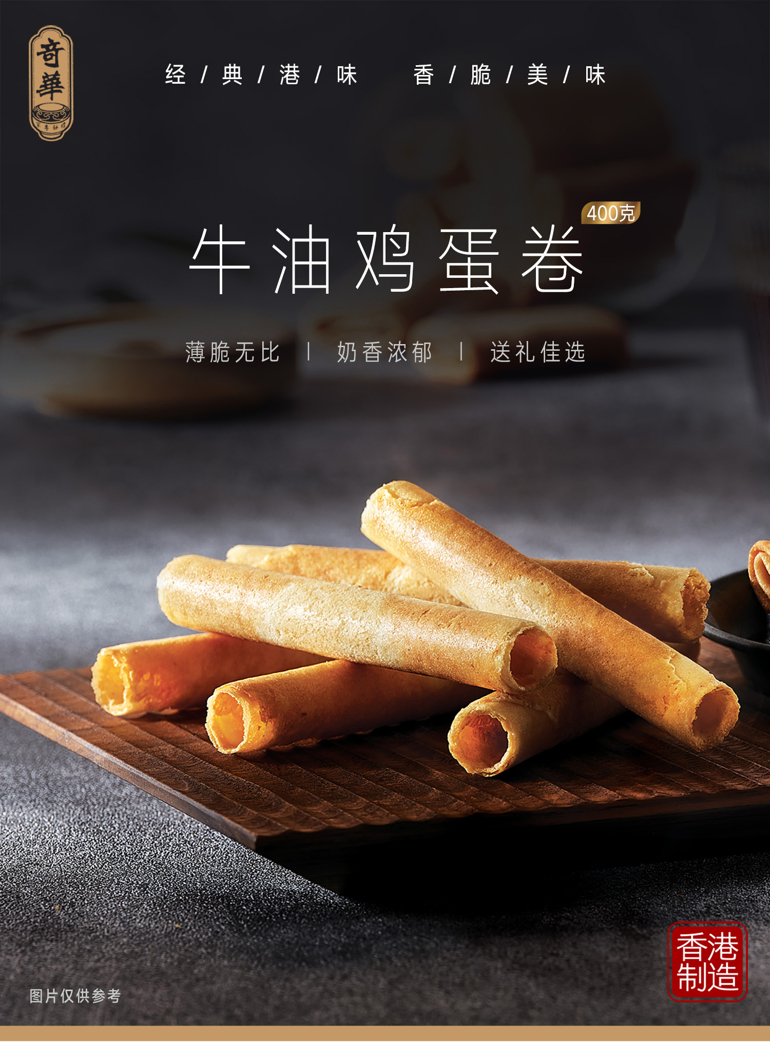 【香脆鸡蛋卷400克】香脆鸡蛋卷礼盒进口零食糕点送礼特产小吃中国香港奇华饼家
