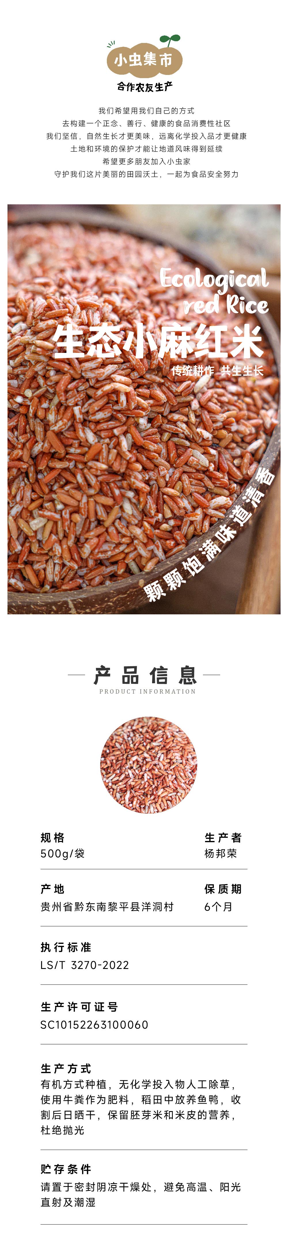 【2025秋收新米】生态小麻红米 500g/袋 | 合作农友生产,产自贵州黎平洋洞村,生产者:杨邦荣 &【公平贸易农人定价】