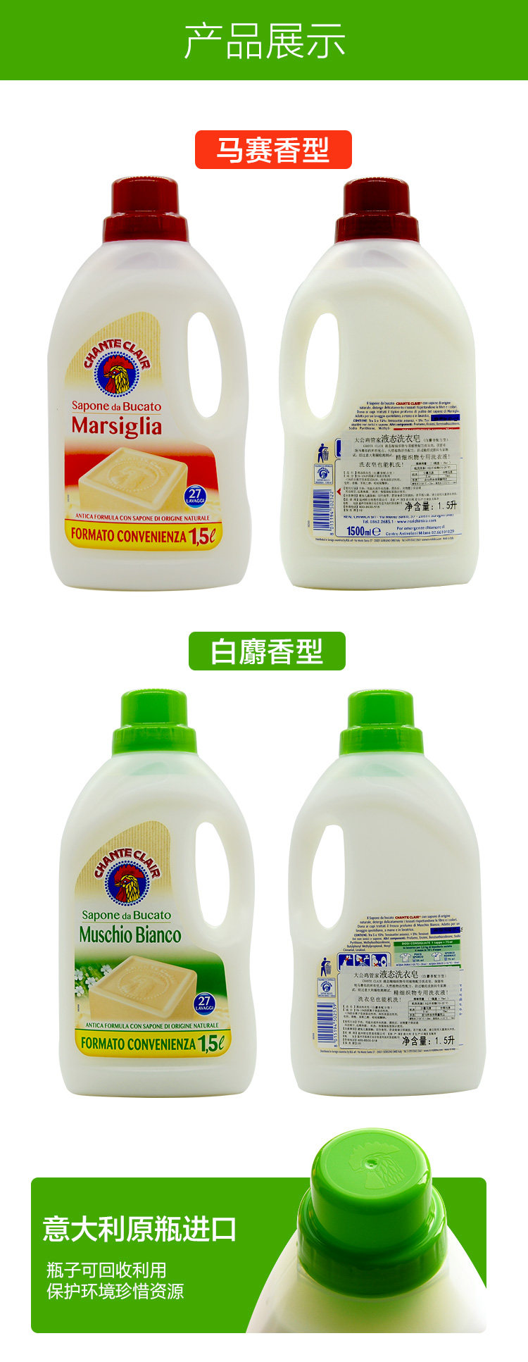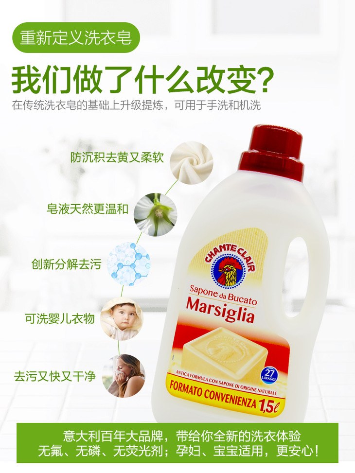 1500ml大公鸡头洗衣液(马赛香) 植物萃取 温和不伤手