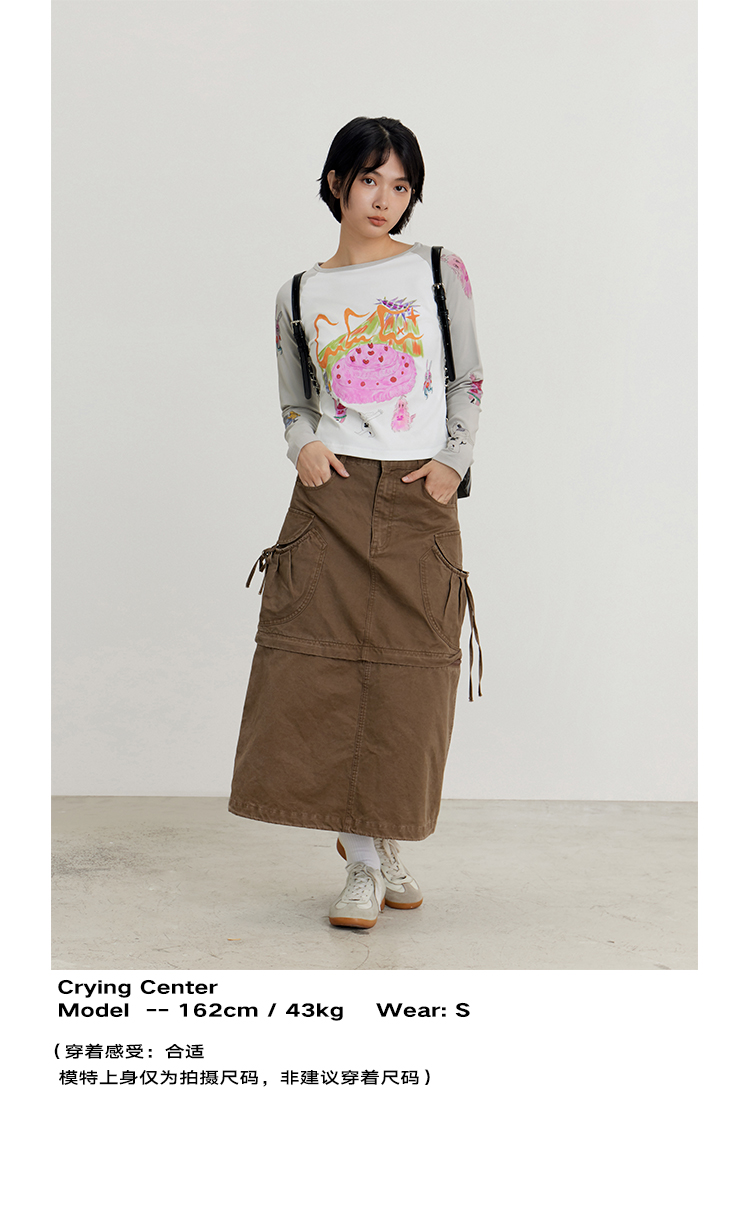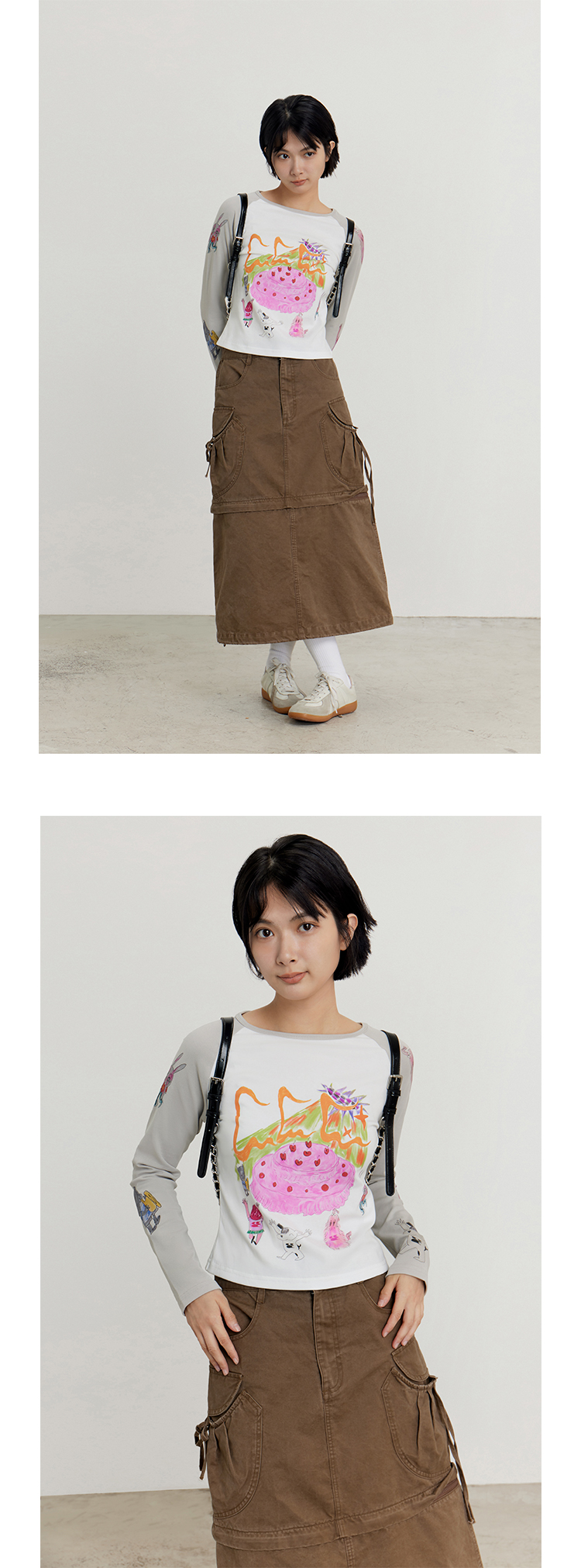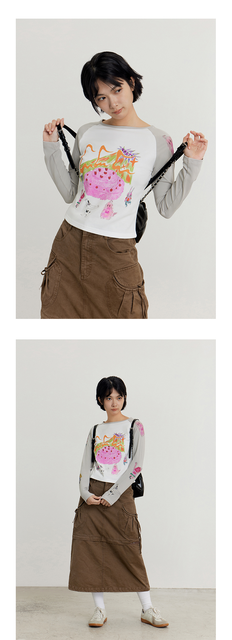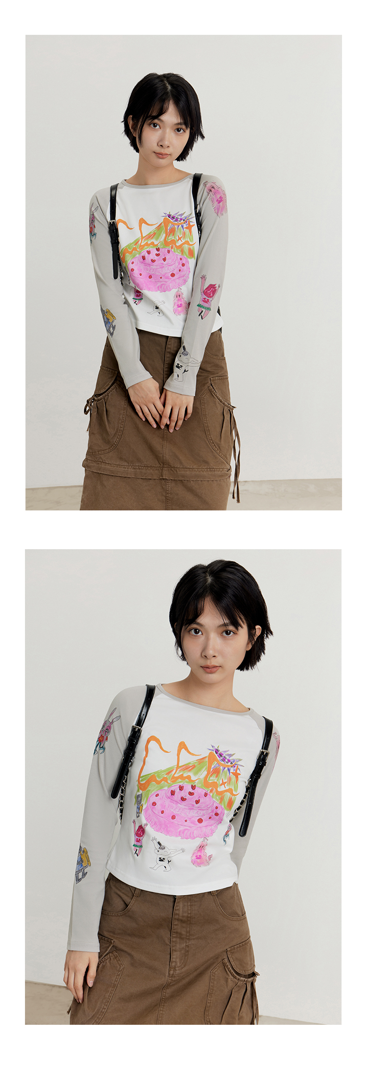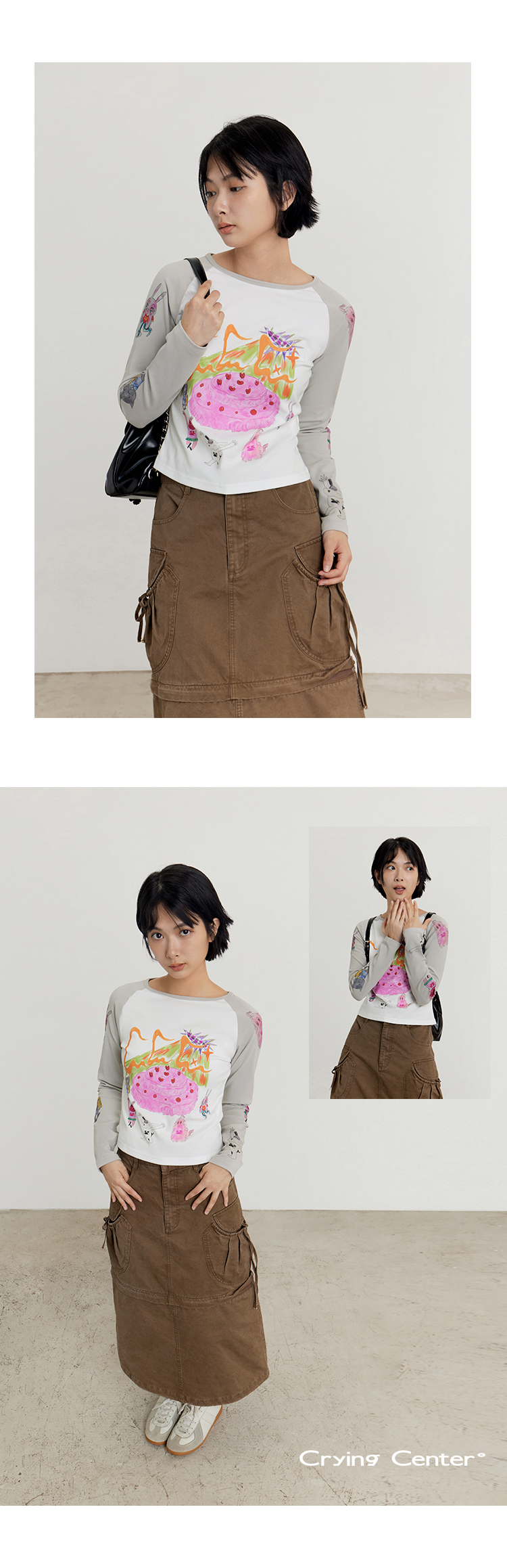 CryingCenter 围蛋糕庆祝插画印花辣妹插肩长袖修身百搭 哭喊中心