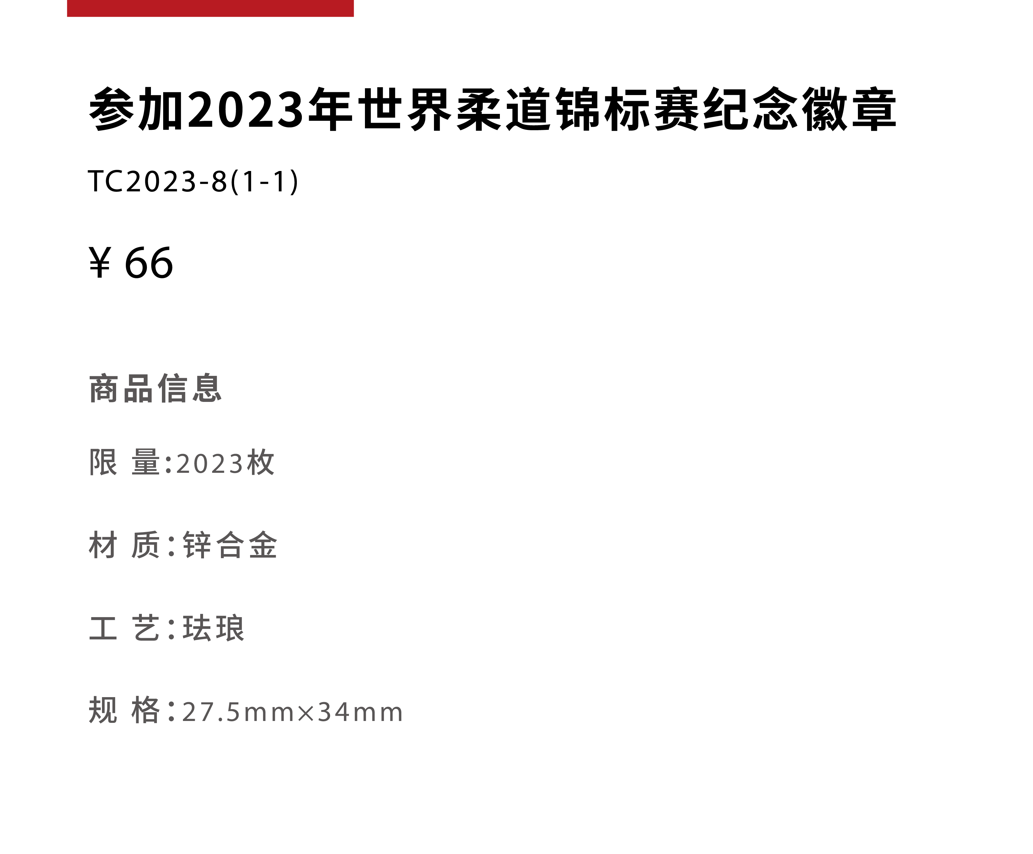 参加2023年世界柔道锦标赛纪念徽章