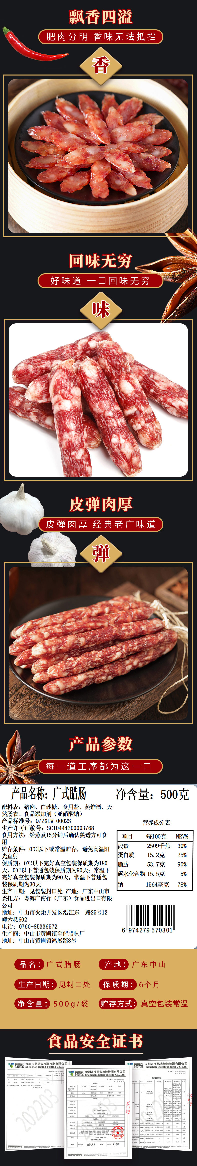 粤海食品广式腊肠(500g)
