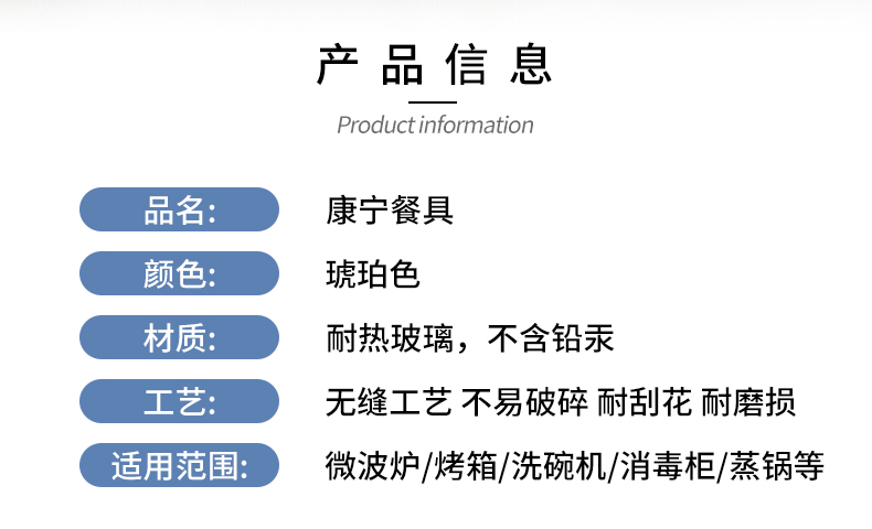 康宁餐具耐热玻璃琥珀色餐具家用泡面汤碗沙拉碗双耳碗饭碗碟套装