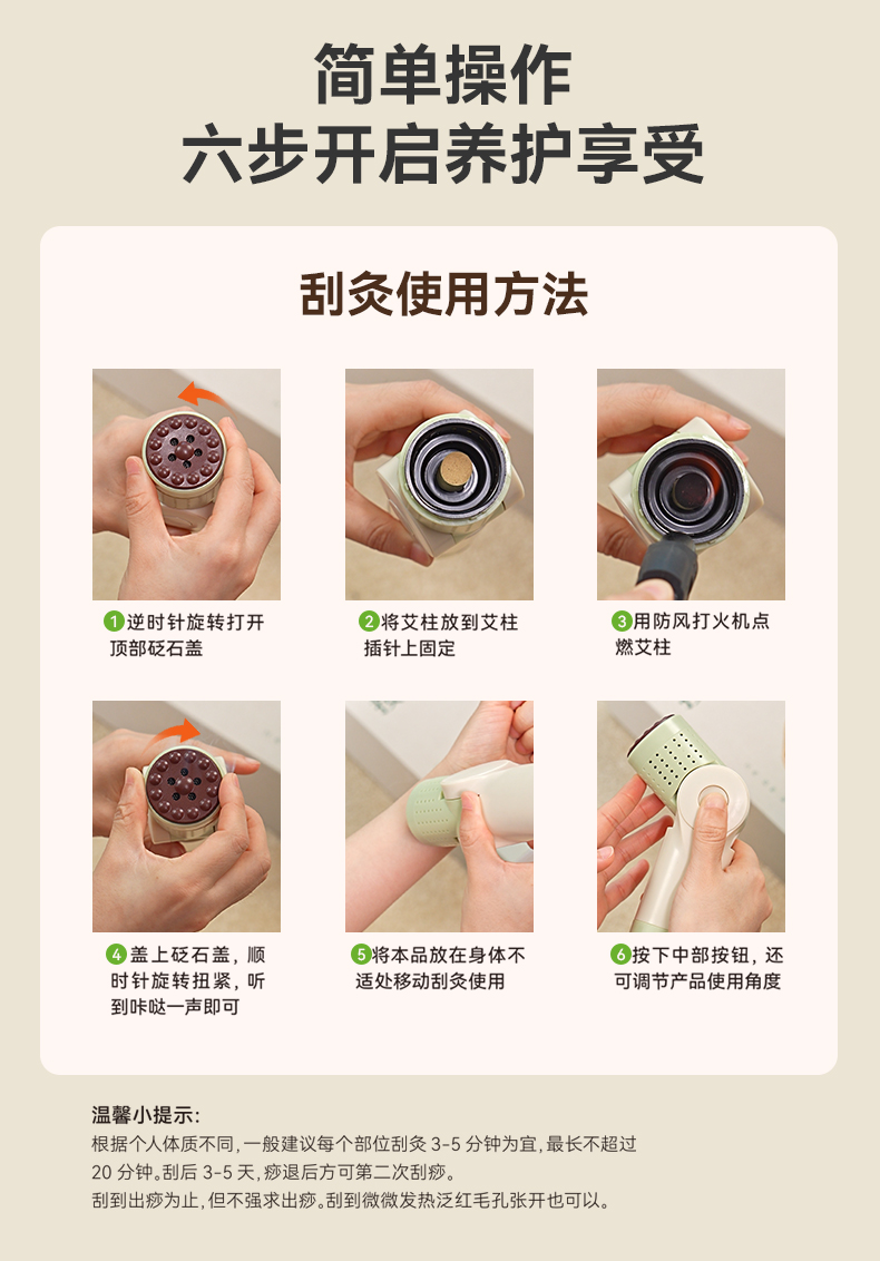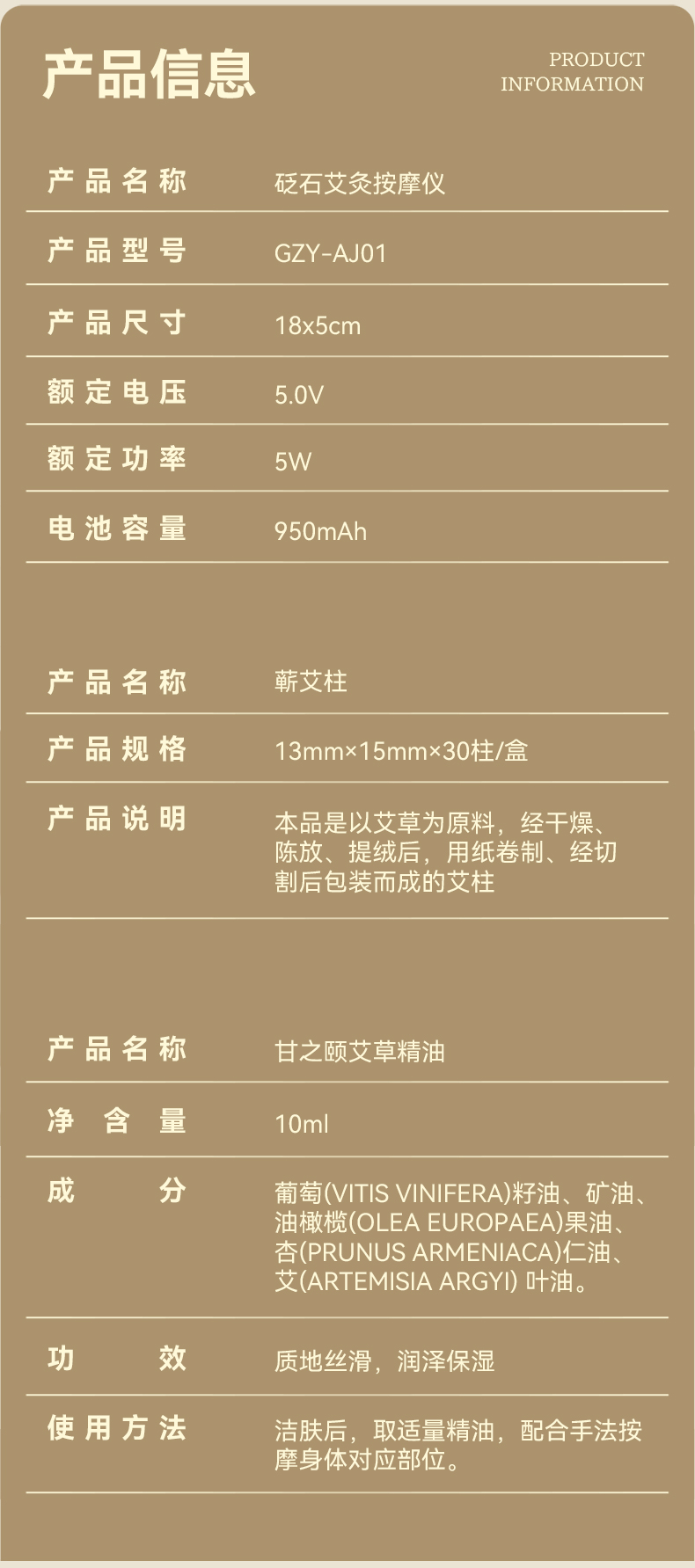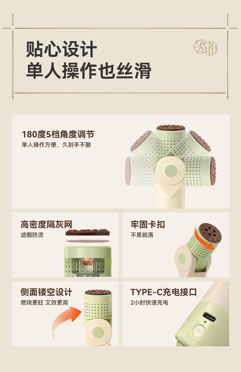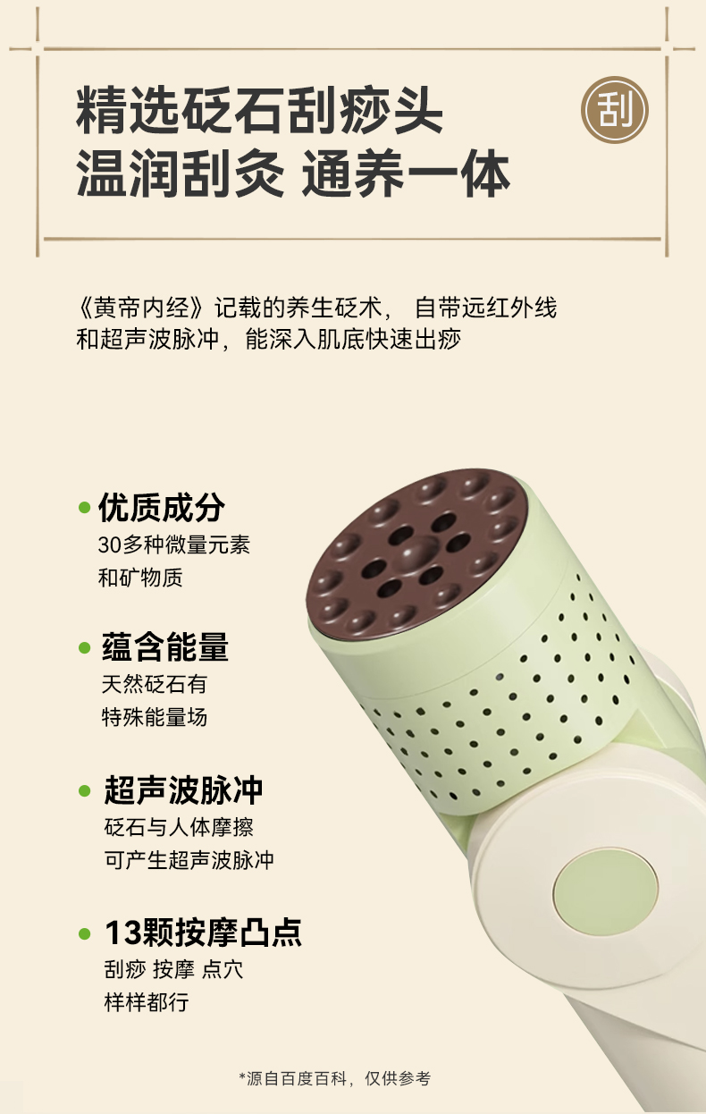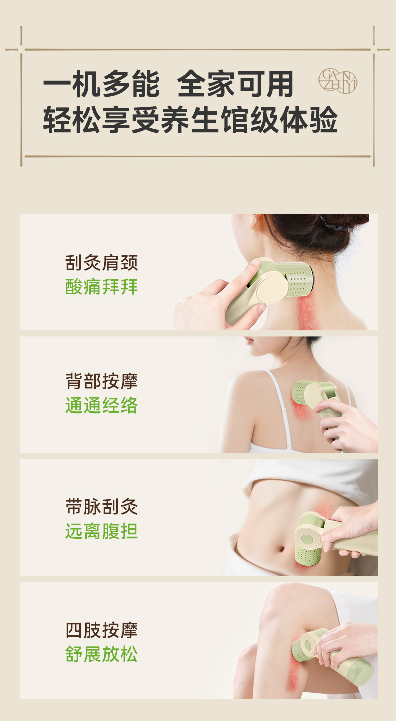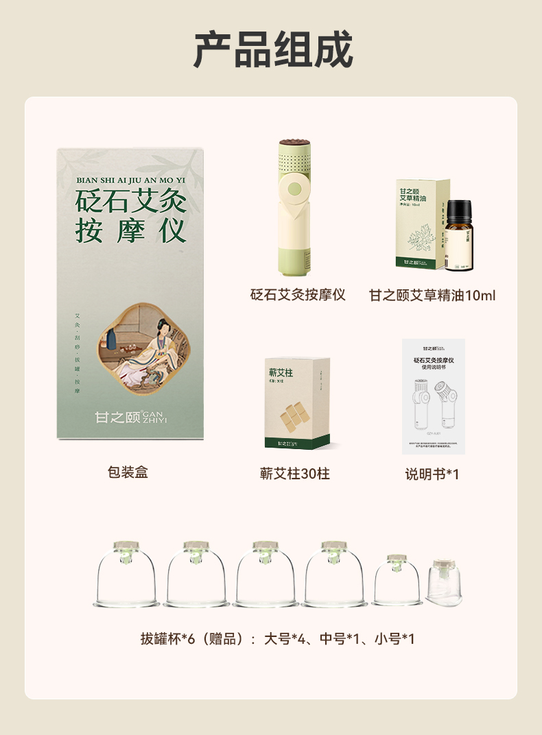 甘之颐 砭石艾灸按摩仪 刮痧艾灸拔罐按摩四合一拔罐仪随身家用悬灸