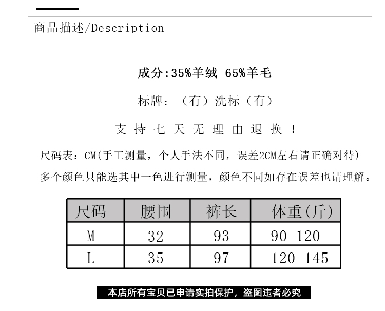 DU版新潮卫裤!显腿长!重磅加厚四平针山羊绒裤子女R22351