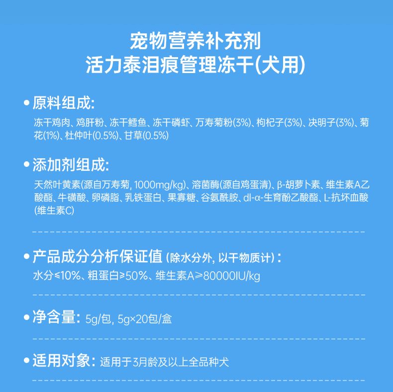 活力泰泪痕管理冻干粉由内而外减轻泪痕犬用