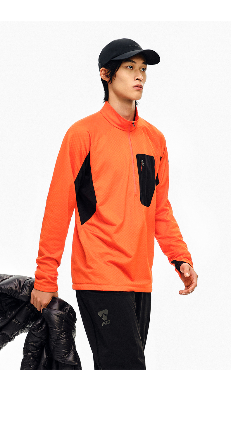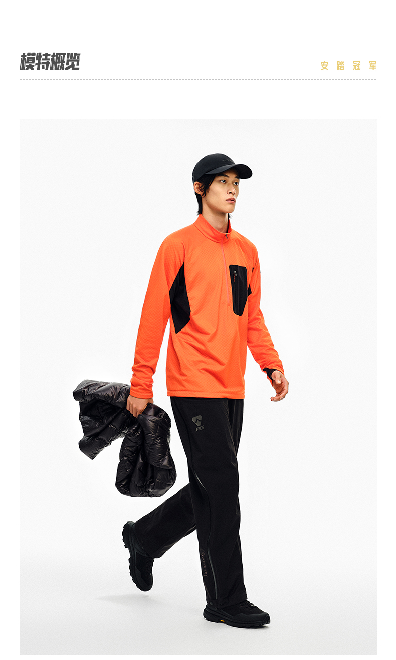 安踏冠军户外系列AGX高海拔徒步OCTA长袖T恤保暖薄绒T恤152540411