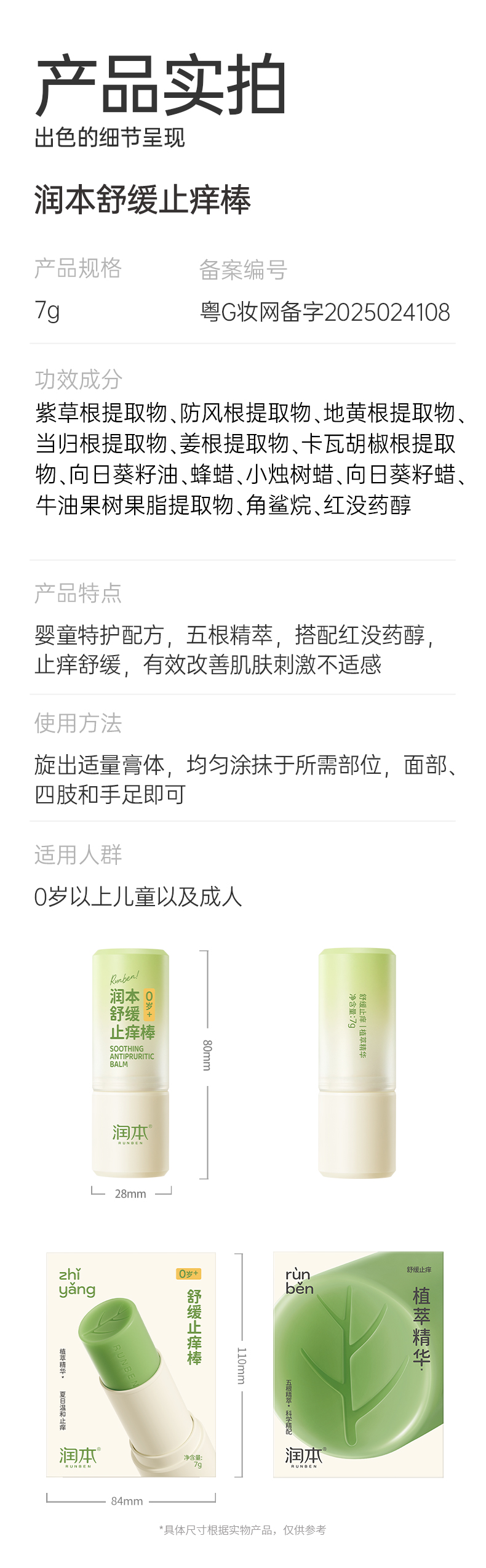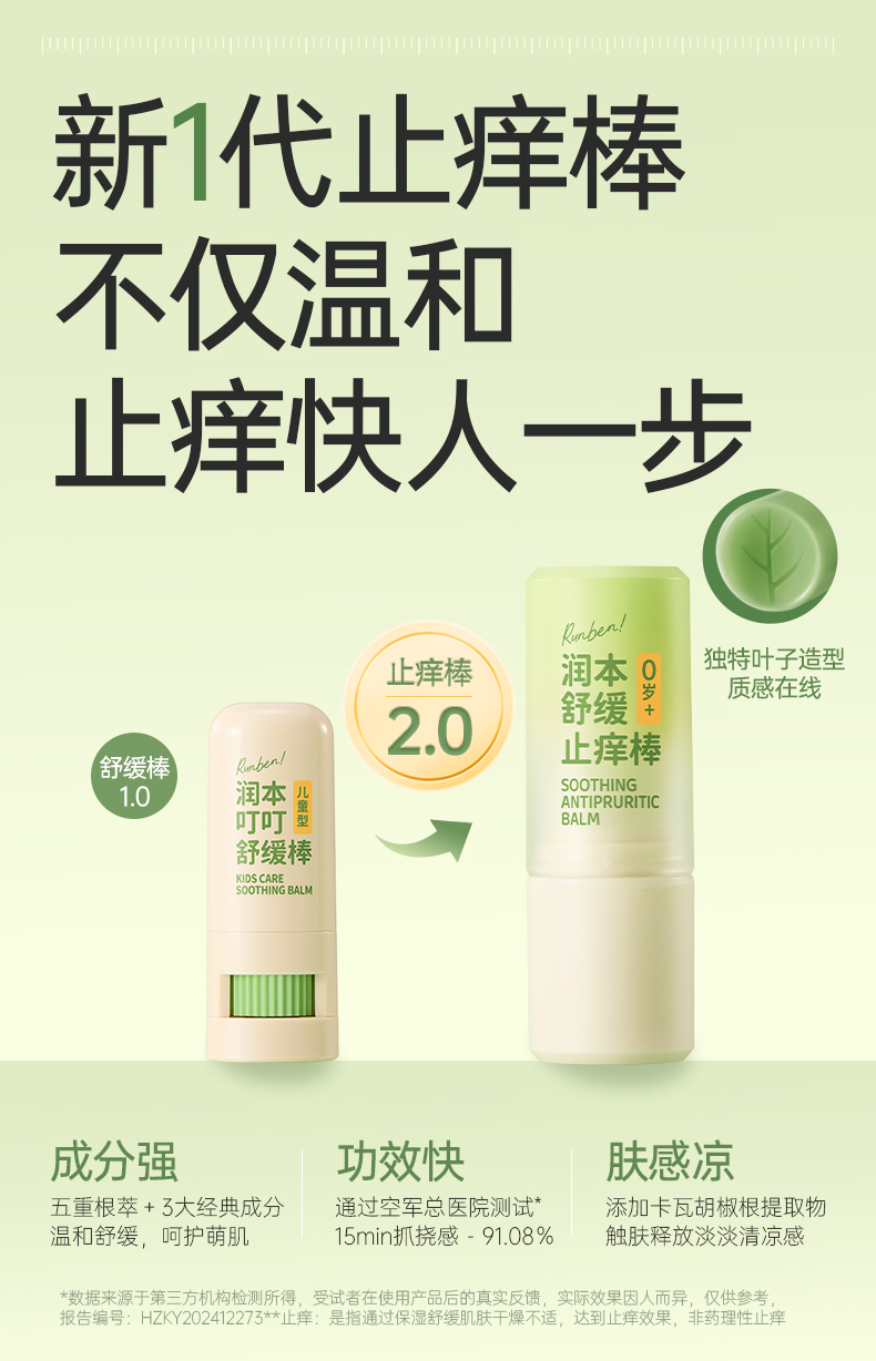 润本舒缓止痒膏 舒缓蚊虫子叮咬清凉便携 青草膏