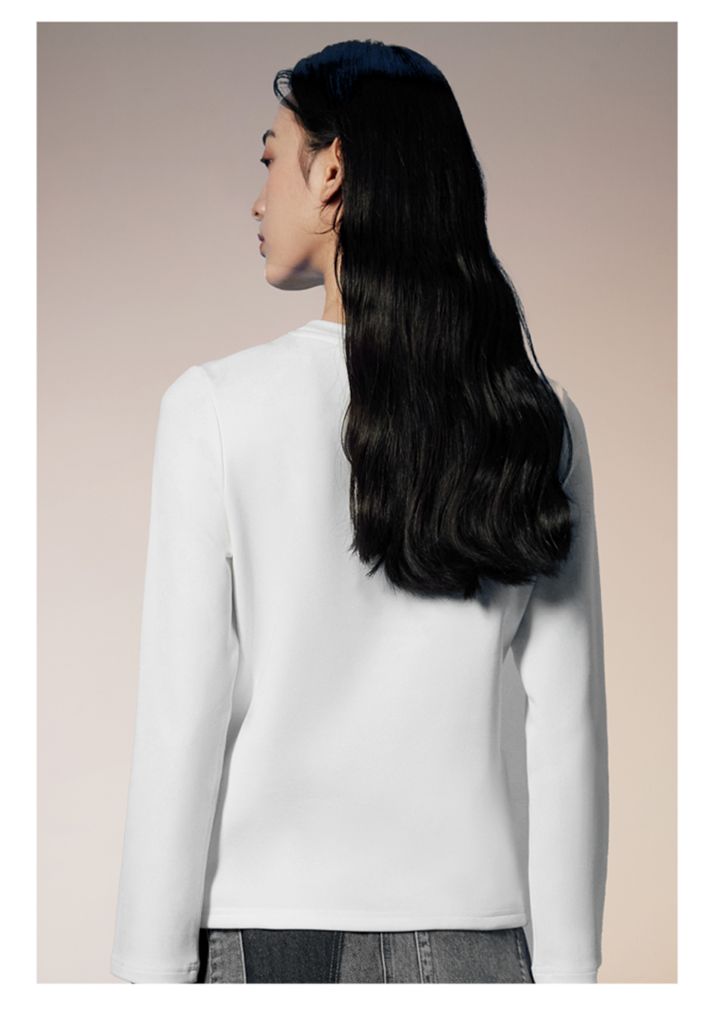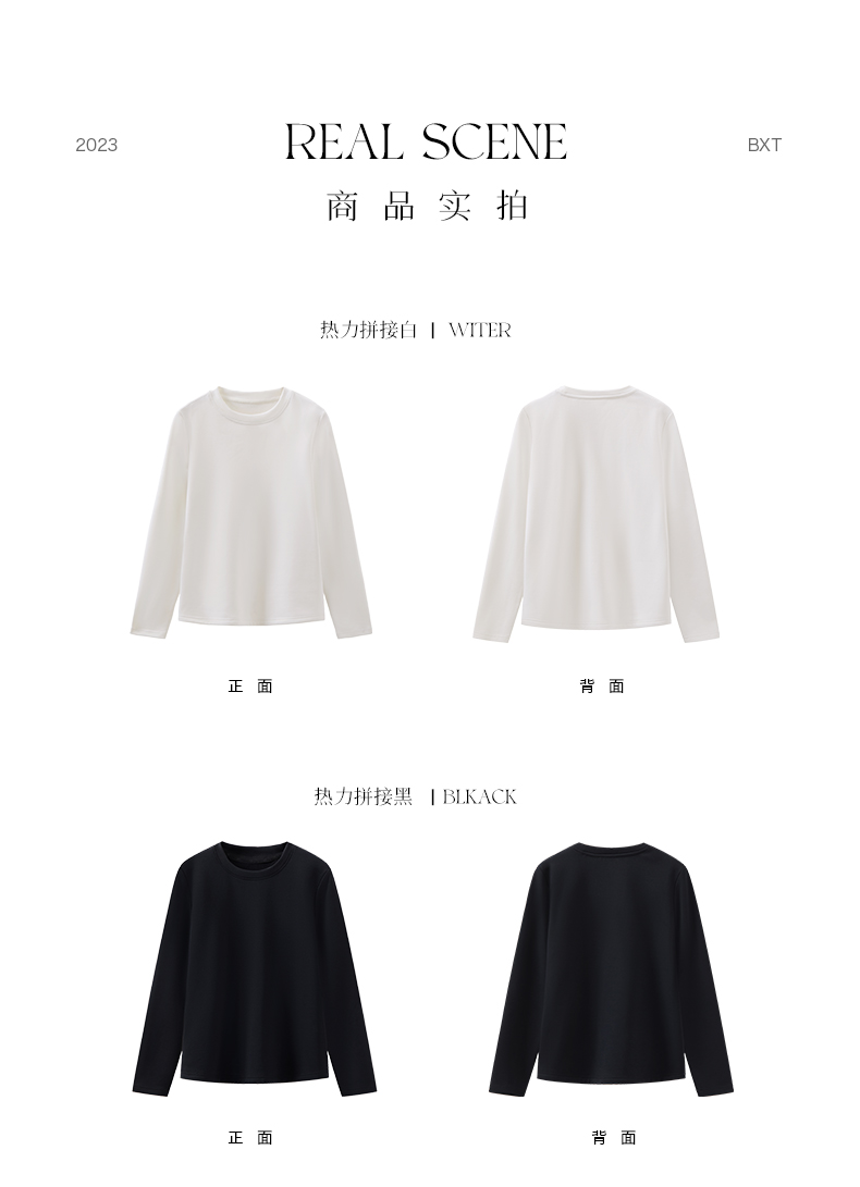 拇指白小T热力加绒拼接长袖T