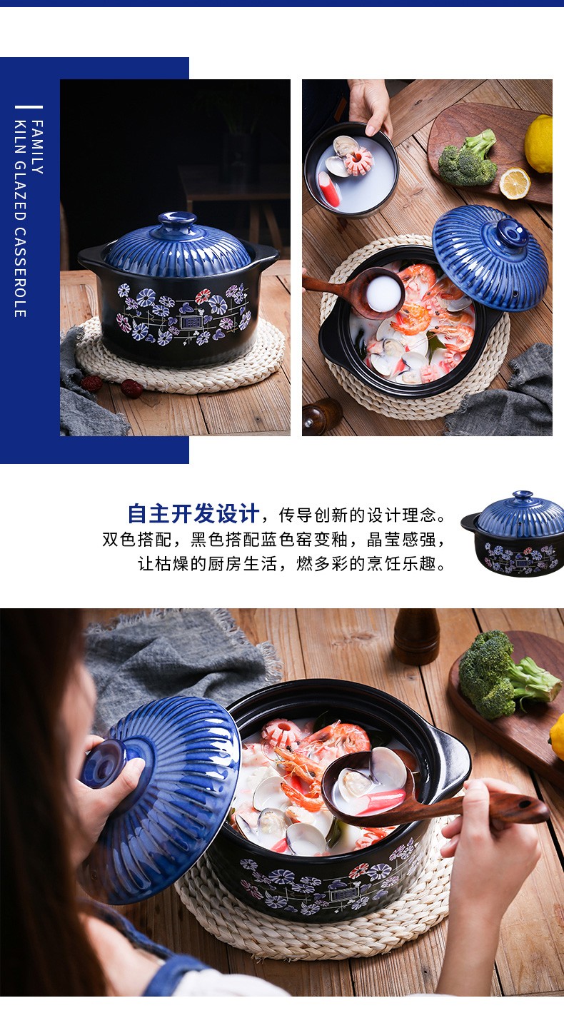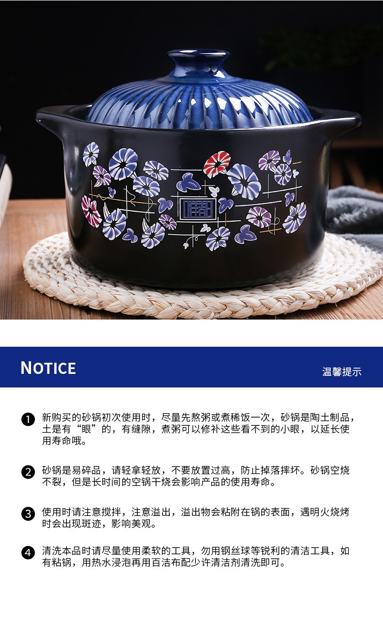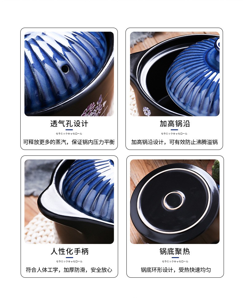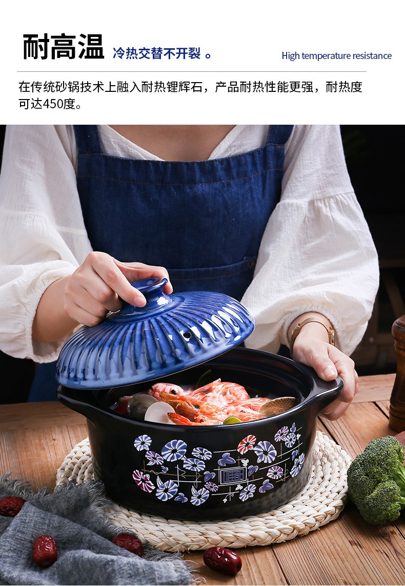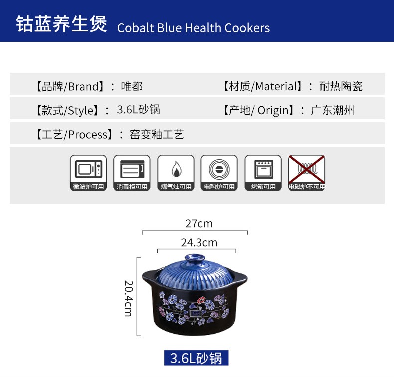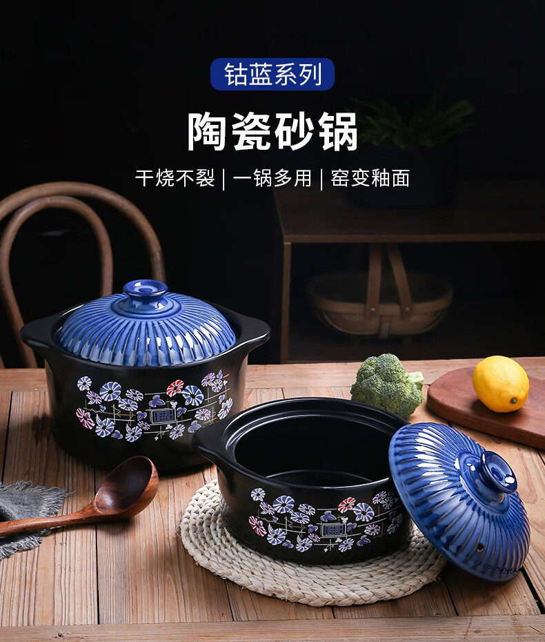 唯都 钴蓝养生煲砂锅土锅煲汤炖煮焖烧养生锅耐高温