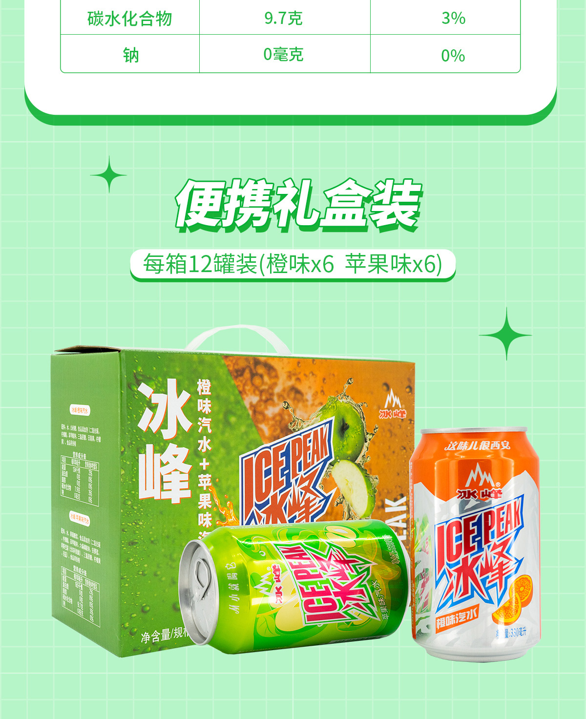 冰峰 橙苹礼盒 橙味汽水 330ml*6+苹果味汽水330ml*6双拼礼盒装碳酸饮料